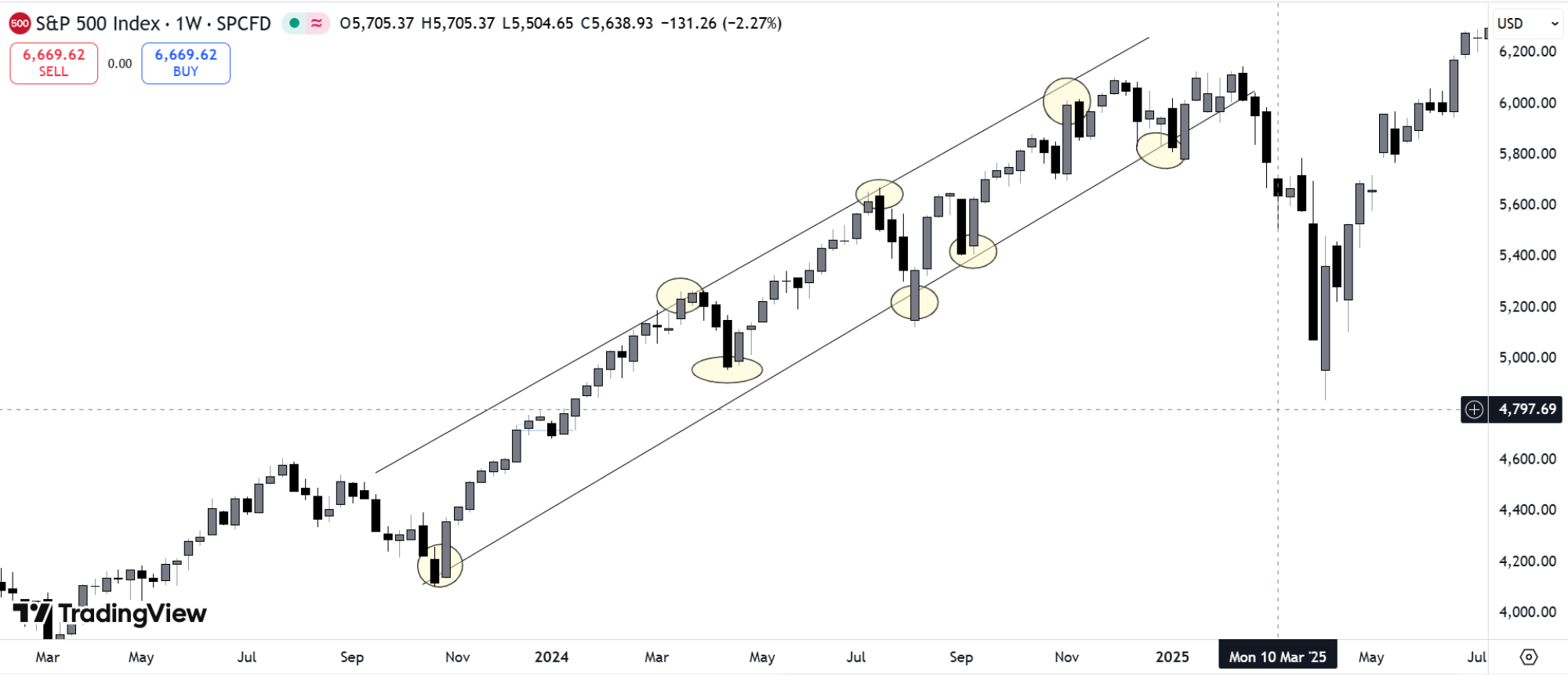 U snažnom uzlaznom trendu, na primjer, korekcije se često zaustavljaju točno na liniji trenda prije nego što cijena nastavi rasti, dok proboj te linije može signalizirati promjenu u režimu tržišta.