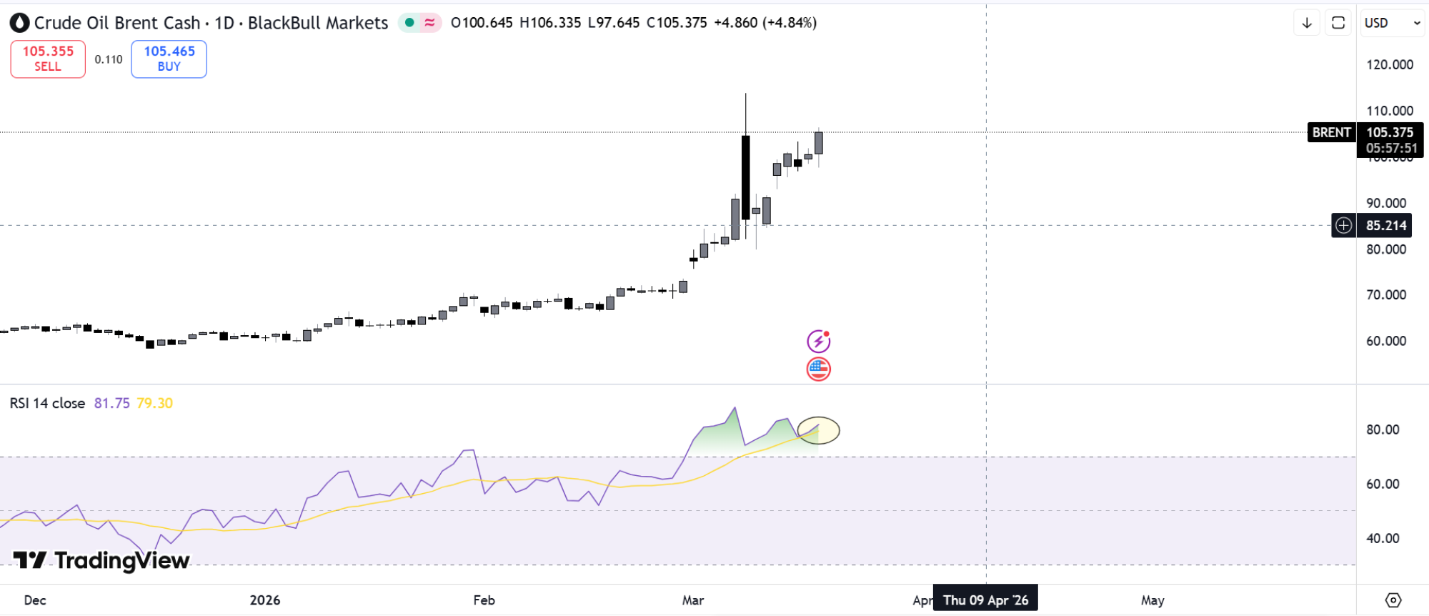 Dobar primjer može se vidjeti na tržištu nafte Brent. Fundamentalni čimbenici, poput ograničene ponude ili geopolitičkih napetosti, mogu ukazivati na daljnji rast cijena, ali tehnička analiza može pokazati da je tržište kratkoročno prekupljeno (na primjer putem RSI indikatora koji je trenutno oko 80), što sugerira da je racionalnije pričekati korekciju prije ulaska u poziciju.