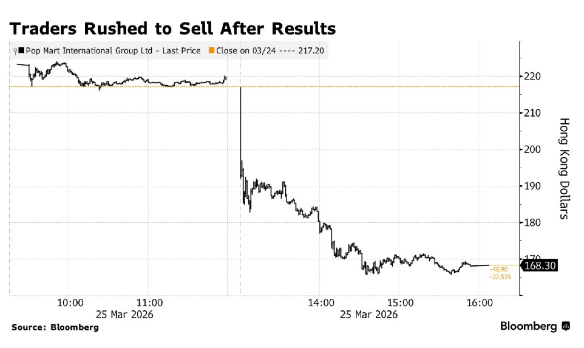 Dionice Pop Mart International Group Ltd. potonule su rekordnih 23 posto nakon što su cjelogodišnji rezultati tvrtke otkrili sve veću ovisnost o franšizi Labubu, što je razočaralo ulagače koji su računali na druge brendove za održavanje eksplozivnog rasta.