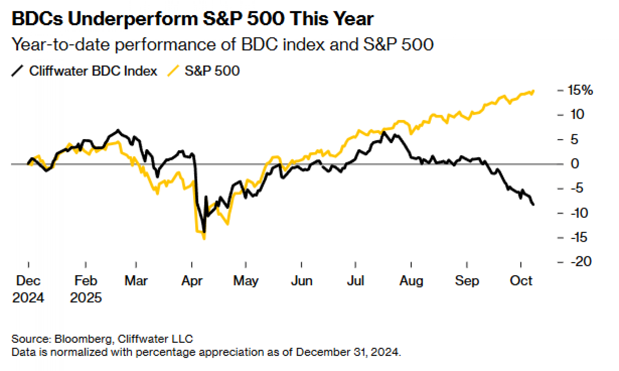 Godišnji učinak BDC indeksa i S&P 500 | Bloomberg