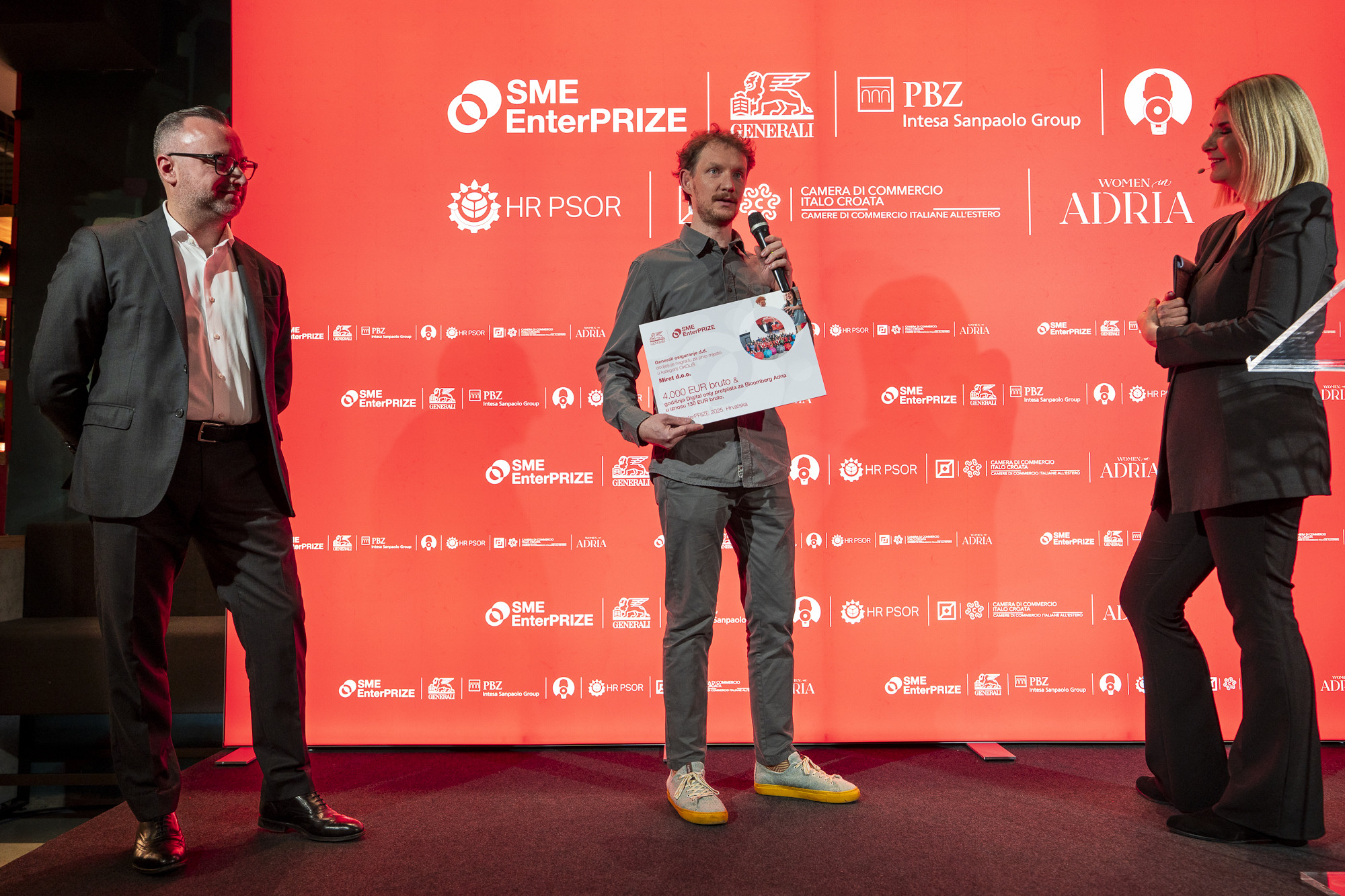 Zagreb, 27. studenog 2025. – U inspirativnoj atmosferi i uz veliko zanimanje poduzetničke zajednice, Generali osiguranje d.d. je, zajedno s partnerima inicijative – Privrednom bankom Zagreb, Udrugom Glas poduzetnika, Hrvatskim poslovnim savjetom za održivi razvoj, Talijansko-hrvatskom gospodarskom komorom te mrežom Women in Adria – proglasio pobjednike ovogodišnjeg izdanja natječaja SME EnterPRIZE.