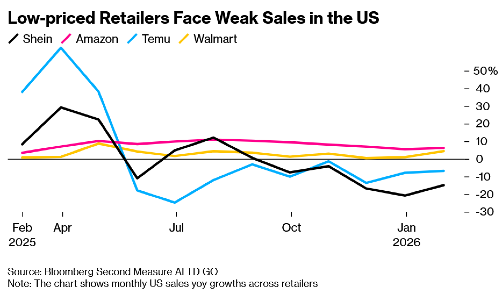 Istovremeno, Shein se suočava s preprekama na zapadnim tržištima jer su poskupljenja uzrokovana carinama smanjila potražnju potrošača, a regulatori sve strože nadziru njegovo poslovanje. Rast prodaje u SAD-u izgubio je zamah od kolovoza, bilježeći dvoznamenkasti pad u odnosu na prethodnu godinu posljednjih mjeseci, prema podacima platforme Bloomberg Second Measure koja prati transakcije anonimne skupine američkih kupaca. Temu, u vlasništvu tvrtke PDD Holdings Inc., još jedan niskobudžetni online trgovac koji se također uvelike oslanja na kineski lanac opskrbe, zabilježio je sličan trend prodaje u SAD-u.
