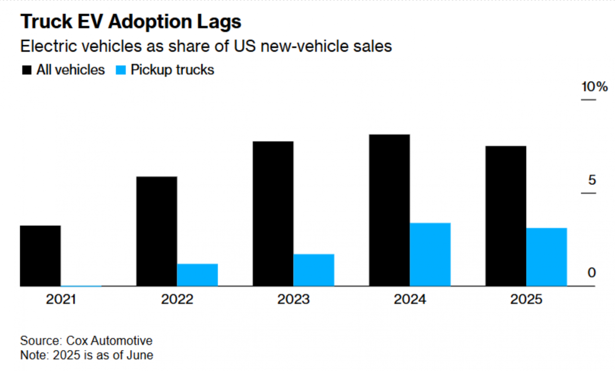Proizvođači su u prvoj polovini 2025. američkim vozačima prodali ukupno oko 35.000 električnih kamioneta, što je za četiri posto manje u odnosu na prethodnu godinu. S druge strane, podaci društva za istraživanje tržišta AutoForecast Solutions pokazuju da je u istom razdoblju razgrabljeno 1,6 milijuna benzinskih kamioneta pune veličine. Proizvođači koji su se žurili uložiti milijarde dolara u proizvodnju priključnih električnih kamioneta sada se čude kako su mogli toliko precijeniti interes svojih najvjernijih kupaca.