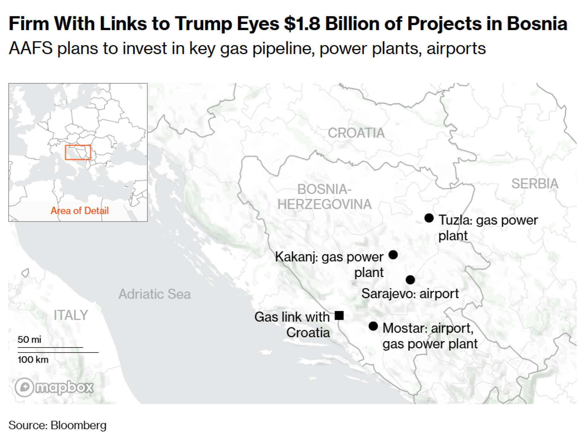 Tvrtka širi svoje poslovne interese u regiji, koja je već žarište za druge sklapaoce poslova iz Trumpovog užeg kruga. Ovog je mjeseca AAFS sa sjedištem u Wyomingu osigurao ugovor za izgradnju ključnog plinovoda u Bosni i Hercegovini vrijedan 300 milijuna eura.