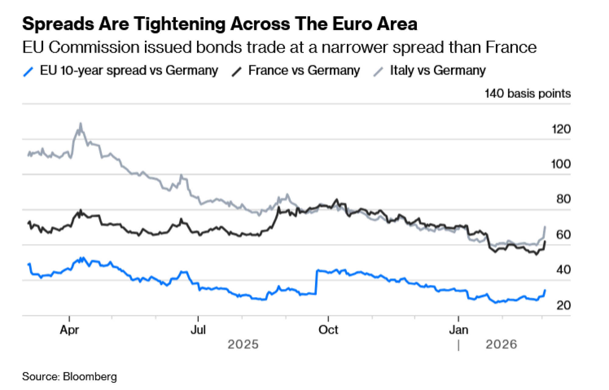 To sužavanje razlike u prinosima, koje se također dogodilo i neposredno prije uvođenja eura, učinit će ideju o većem zajedničkom dugu unutar Unije politički prihvatljivijom jer se Berlin ne bi vezao za susjede da su oni znatno financijski slabiji.