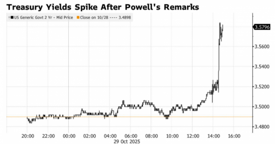 U tom kontekstu, Fed je objavio da će od 1. prosinca obustaviti smanjenje svog portfelja vrijednosnih papira, nakon što je ranije ove godine usporio tempo njihova povlačenja, te da će dospjele obveznice saveznih agencija reinvestirati u državne zapise. Guverner Feda Stephen Miran glasao je protiv odluke, zalažući se za smanjenje stopa za pola postotnog boda, dok je predsjednik ogranka Feda iz Kansasa Jeff Schmid izdvojio mišljenje u korist zadržavanja postojećih kamatnih stopa.