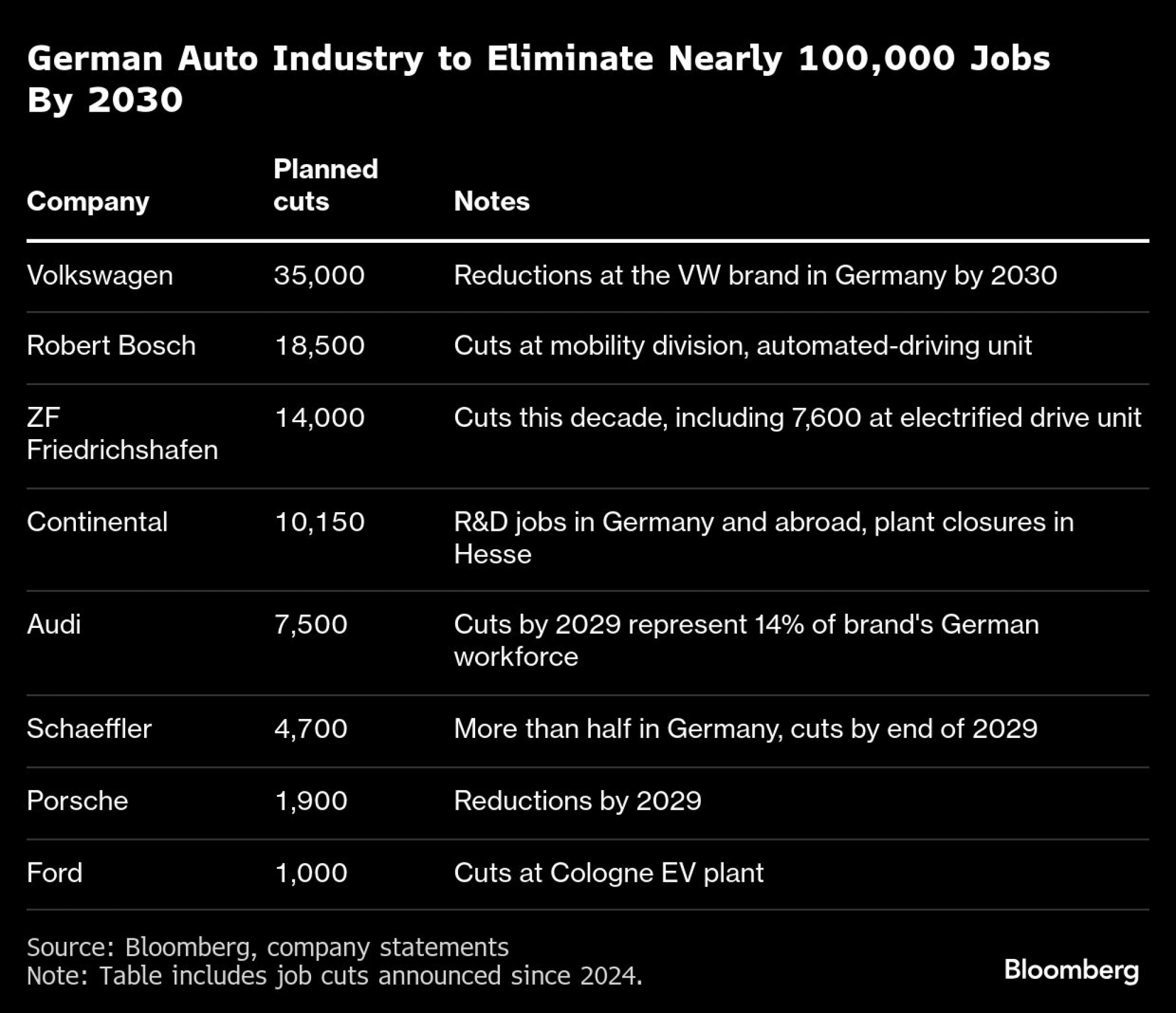 Njemačka autoindustrija do 2030. ukida gotovo 100.000 radnih mjesta | Bloomberg