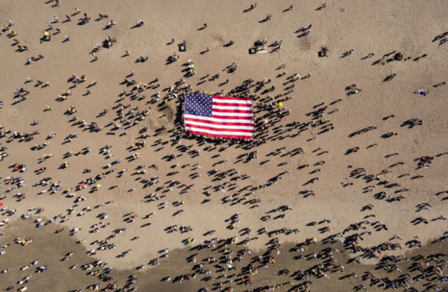 Prosvjednici tijekom skupa “No Kings” u Denveru. Prosvjednici drže američku zastavu tijekom skupa “No Kings” na plaži Ocean Beach u San Franciscu.