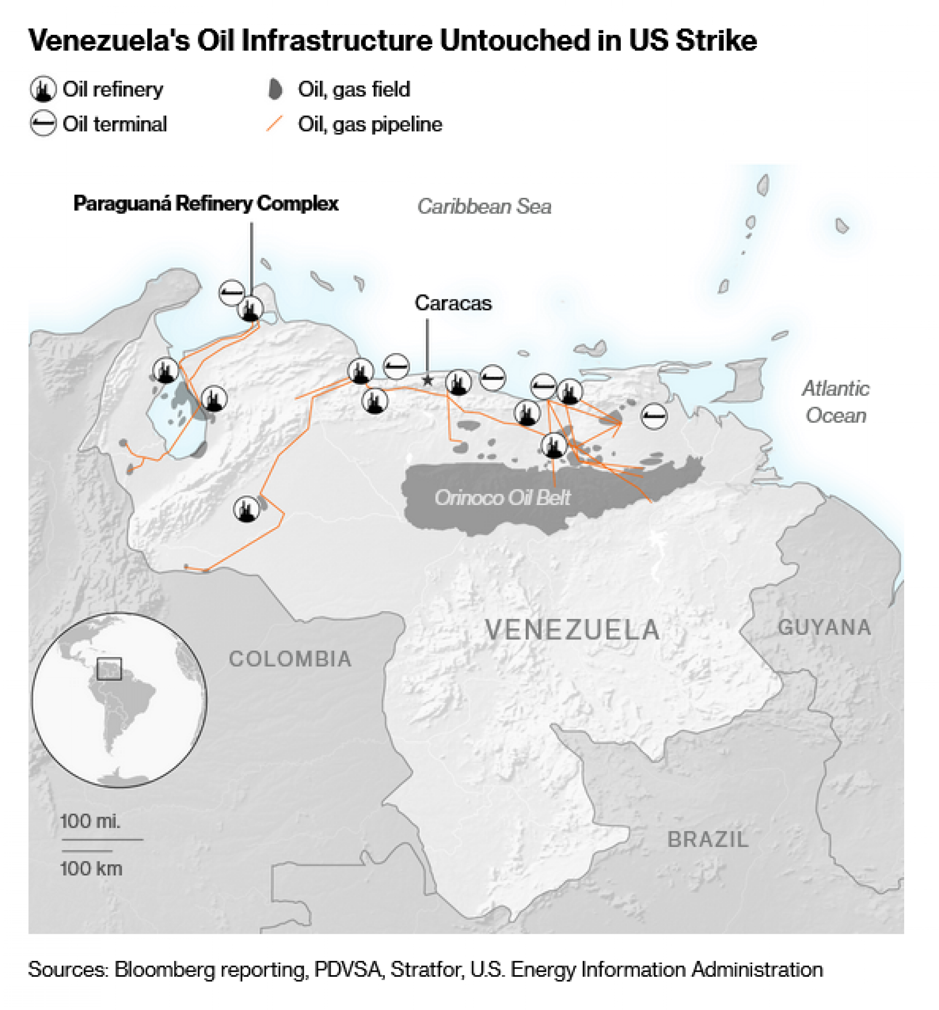 Resursi su Trumpov fokus i u Ukrajini, gdje je SAD potpisao sporazum o dobivanju pristupa njezinim mineralnim resursima kao dio poteza za podršku vladi Zelenskog. U Venezueli postoje resursi osim same nafte. Zemlja s 30 milijuna stanovnika "ima gotovo 3000 kilometara obale, s prekrasnim karipskim plažama pogodnim za turizam i dobro pozicioniranim lukama za pomorsku trgovinu koja povezuje Panamski kanal, američku obalu Meksičkog zaljeva i Europu", tvrdi Jimena Zuniga, analitičarka u Bloomberg Economicsu.