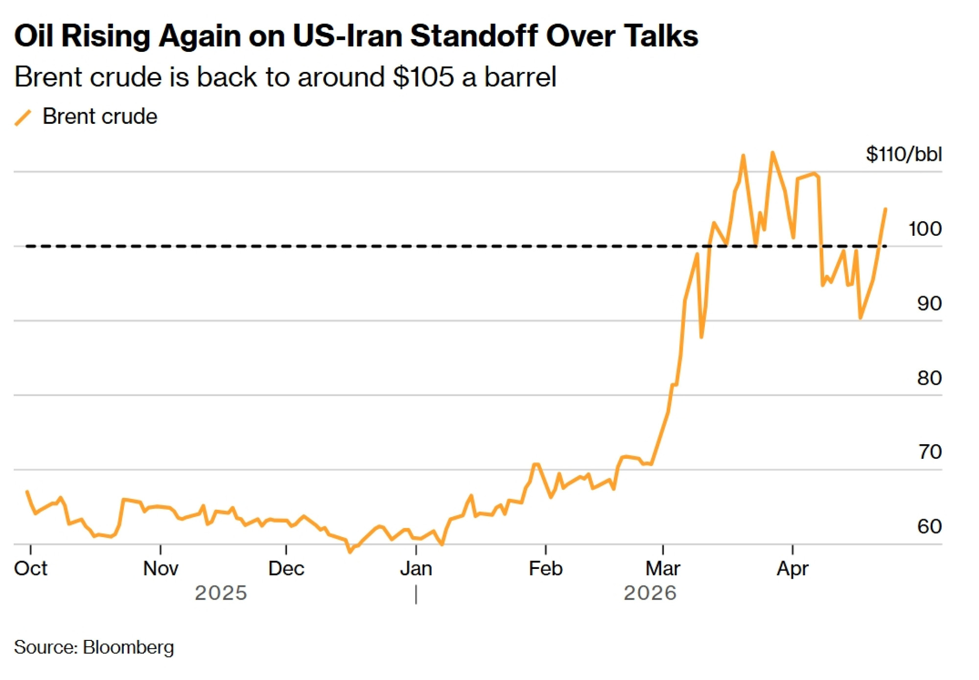 Cijena sirove nafte tipa Brent popela se u četvrtak na oko 105 dolara po barelu uslijed rasta napetosti oko Hormuškog tjesnaca i blokade. SAD je priopćio da su njegove snage u Indijskom oceanu presrele supertanker koji je prevozio naftu iz Irana, dok je Teheran u srijedu otvorio vatru na brodove i zaplijenio dva plovila.