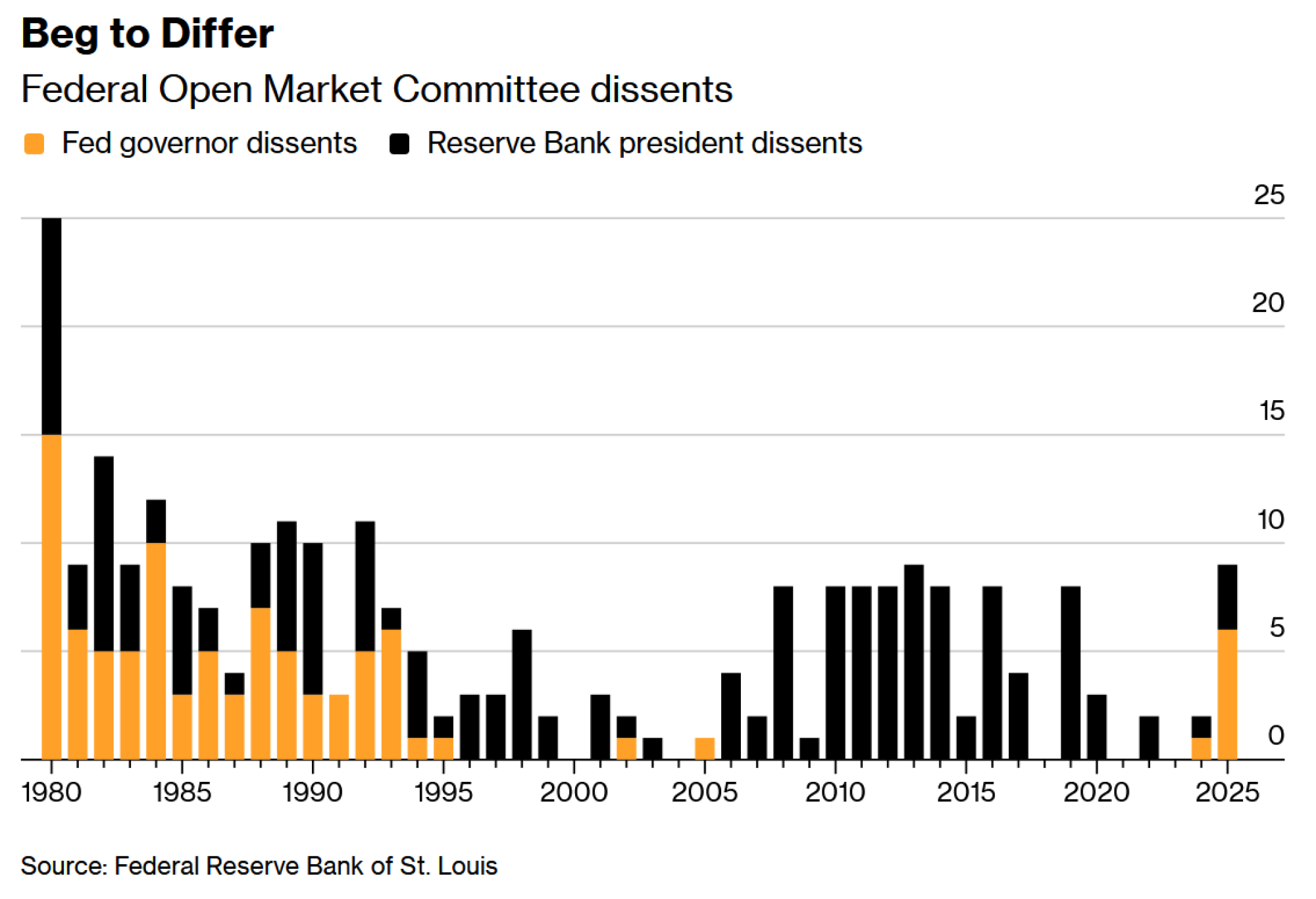 Powellovo pozitivno tumačenje rasprave o kamatnim stopama značajan je odmak od uobičajenog pristupa Feda, koji naglašava jedinstvo, kaže Dario Perkins, izvršni direktor istraživačke tvrtke TS Lombard. Perkins, koji godinama proučava središnje banke, ističe da su jednoglasna glasanja postala norma u SAD-u te se smatraju obilježjem snažnog predsjednika.