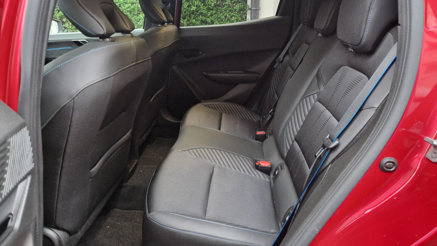 Iako se još uvijek vodi kao auto iz B segmenta, opet je narastao u svim smjerovima pa je sada po gabaritima praktički u rangu prve generacije Meganea. Nažalost, taj rast se ne reflektira na prostranost na stražnjoj klupi koja će za ljude više od 185 cm biti neadekvatna. Zbog kupeovske linije krova nema previše mjesta za glavu, a ako ispred vas sjede suputnici slične visine, patit će i koljena. Kraća vožnja se da izdržati, ali za neku dužu rutu ne preporučujemo. Djeci će straga biti sasvim OK, iako osim 12 voltnog priključka nema puno praktičnih detalja. Plastika na vratima je tvrda, nema naslona za ruke ni držača za piće, nema USB priključaka, prozor se ne spušta skroz do kraja, ali je zatamnjen.