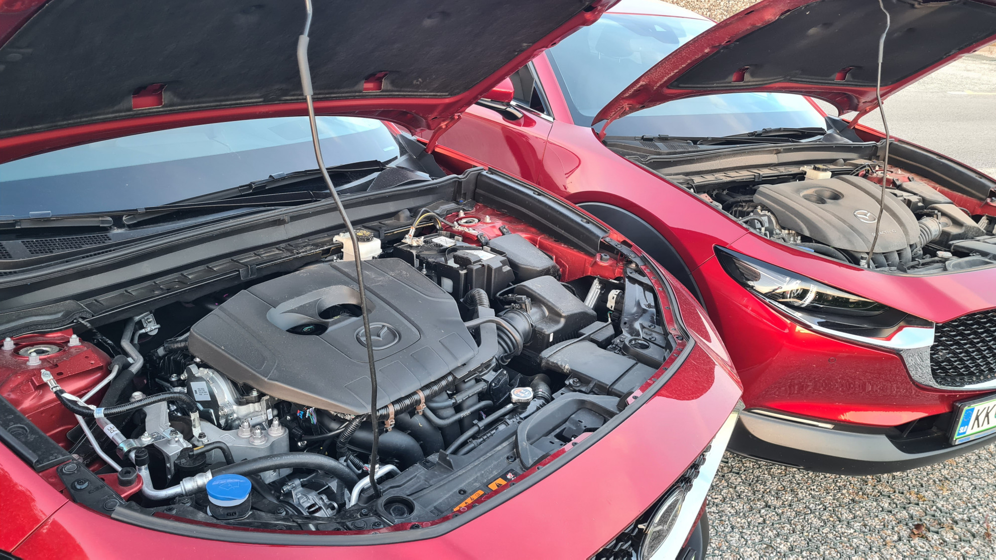 Kad sam usporedio motore ispod poklopca motora, nema većih vidljivih razlika. Istina je da ovo nije novi motor. Znamo ga iz veće Mazde CX-5, osim što ovdje daje manje snage. Na papiru nudi 13 kilovata (18 konjskih snaga) više snage od dvolitrenog, odnosno 103 kilovata (140 konjskih snaga). Za volanom veća snaga nije izražena. Dodatne konjske snage su naravno dobrodošle, ali CX-30 s većim motorom nije baš brz. Glasniji je pri kretanju, a zatim se smiruje. Identičan manjem motoru.