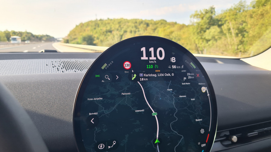 Na punionici u Čatežu na Savi dodao sam još 12 kilovat-sati i krenuo s 58 posto napunjenom baterijom, misleći da ću lako stići do 100 kilometara udaljene Ljubljane. Računalo je pokazivalo domet od 180 kilometara. Samouvjereno sam krenuo autocestom i postavio tempomat na 130 kilometara na sat. Međutim, budući da se domet tako brzo topio, u Novom mestu sam smanjio brzinu na 115, a ubrzo nakon Trebnja morao sam dodatno spustiti brzinu na 100 kilometara na sat.