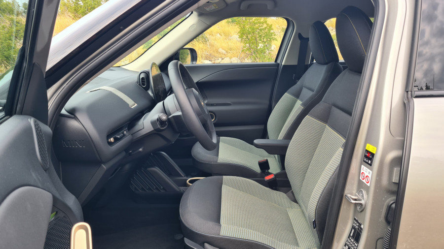 Kabina je jednostavna i zanimljiva. Materijali su čvrsti. Površine su uglavnom prekrivene mekom gumom, ali ima i tvrđe plastike niže. Položaj sjedenja je čvrst, iako mi se ergonomija baš ne sviđa jer nema mjerača ispred volana. Sve informacije se prikazuju na središnjem ekranu. Okrugli ekran i multimedijski sustav su odlični. Klima uređaj se kontrolira na ekranu, ali srećom barem prekidači ostaju na volanu. Pažnju mi je odvlačila nespretno nisko postavljena ručica za otvaranje vrata. Kad sam rukom posegnuo za ručicom, svaki put sam je prekrivao nogom. Aceman ima čvršći ovjes, ali su me više mučili tvrdi nasloni za glavu nego ovjes.