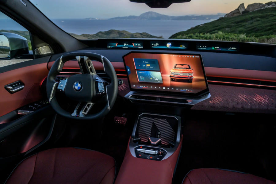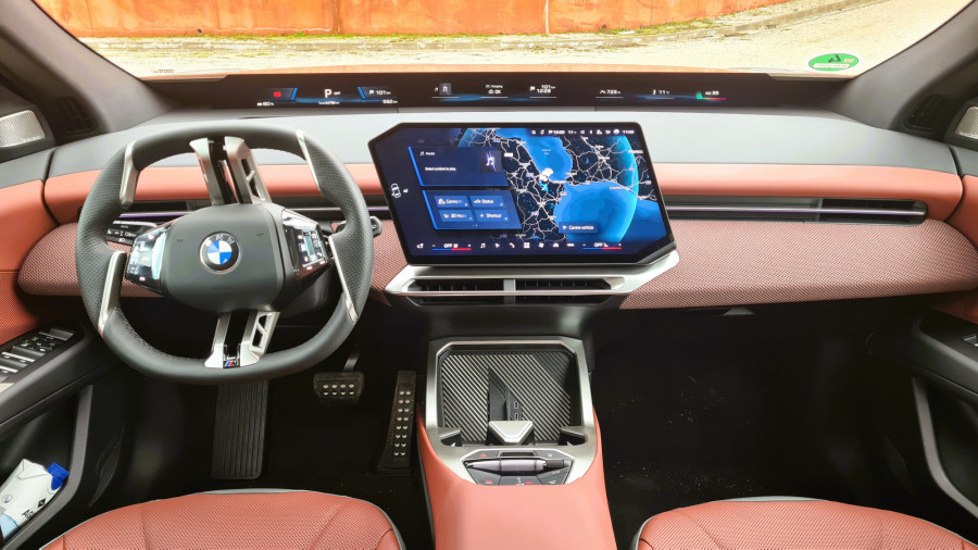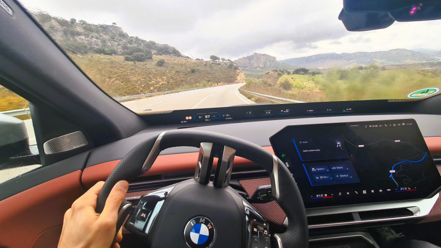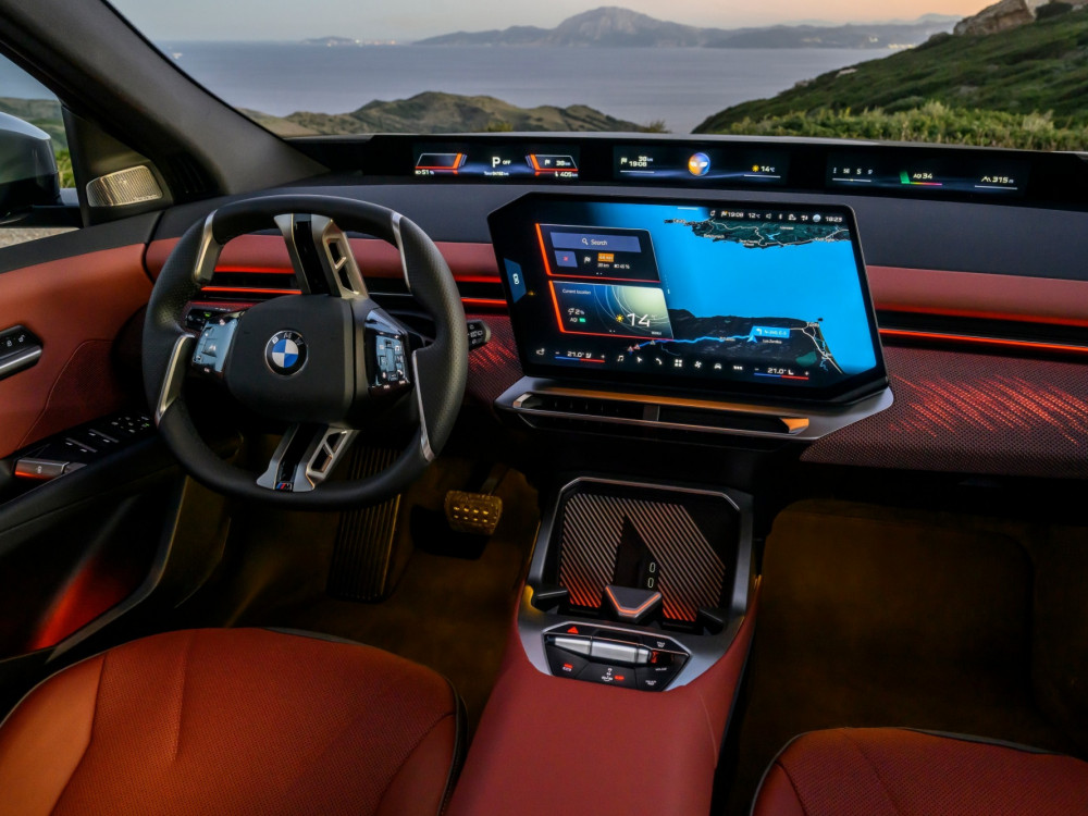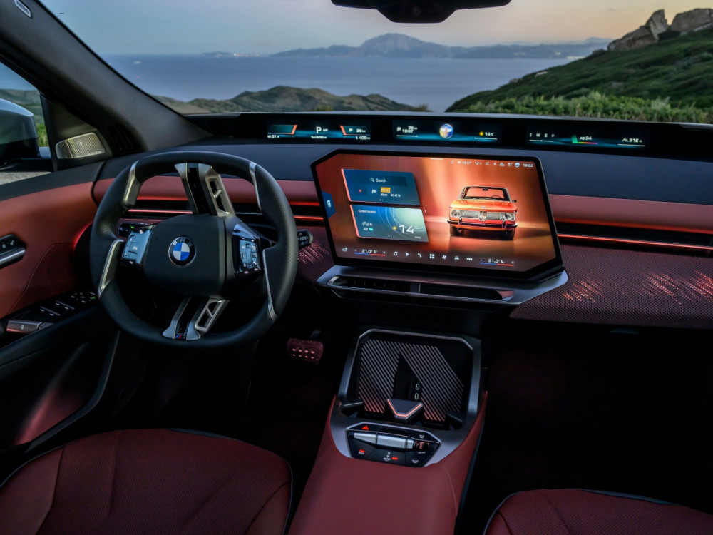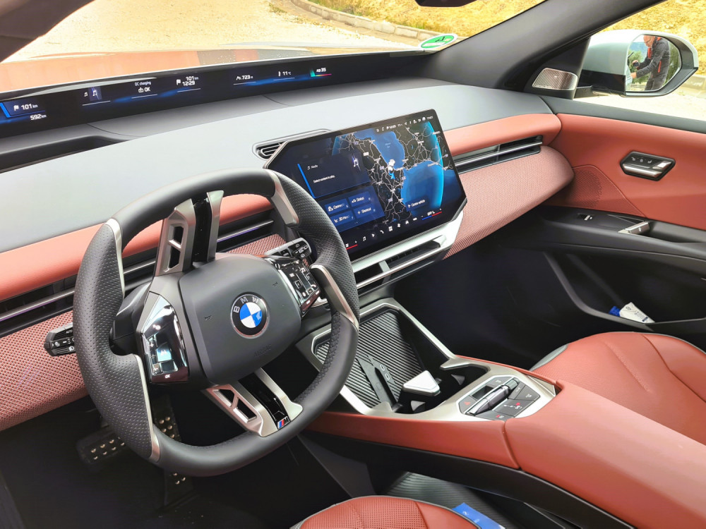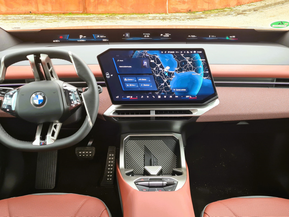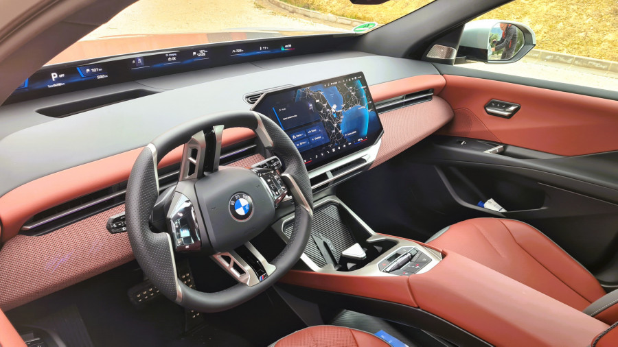Instrumentna ploča je niska, tako da panoramski ekran ispod vjetrobranskog stakla ne zaklanja pogled. Iznad njega se i dalje vidi poklopac motora. Već nakon prvih metara, kada sam napustio hotel, bilo mi je jasno da je iX3 podešen za udobnost... ili sam barem tako mislio. Prije toga do hotela smo se vozili u većem BMW-u iX. iX3 je vrlo usporediv u gradskoj vožnji, što se tiče rupa i brzina s retarderima. Lijepo i tiho upija neravnine. Volan se, unatoč prilično neobičnom obliku, lijepo uklapa u dlanove. Tipke s lijeve strane namijenjene su asistenciji, dok one s desne strane služe za navigaciju kroz izbornike.