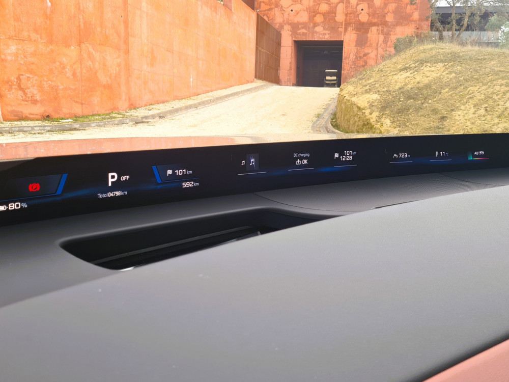 Naravno, najviše me zanimalo kako se vozi. Automatski se pali pritiskom na kočnicu, uopće nema tipke za pokretanje. Uvijek sam se čudio kontrolnoj ploči bez mjerača. U BMW-u je okruženje vozača uređeno slično kao u Peugeotu. Vozač može vidjeti podatke o vožnji putem zaslona ugrađenog ispod vjetrobranskog stakla. Zaslon zauzima cijelu širinu stakla i stvarno je odlična ideja. Ne bi me iznenadilo da i drugi proizvođači u budućnosti kopiraju ovo rješenje. Prikazi na panoramskom zaslonu mogu se prilagoditi.