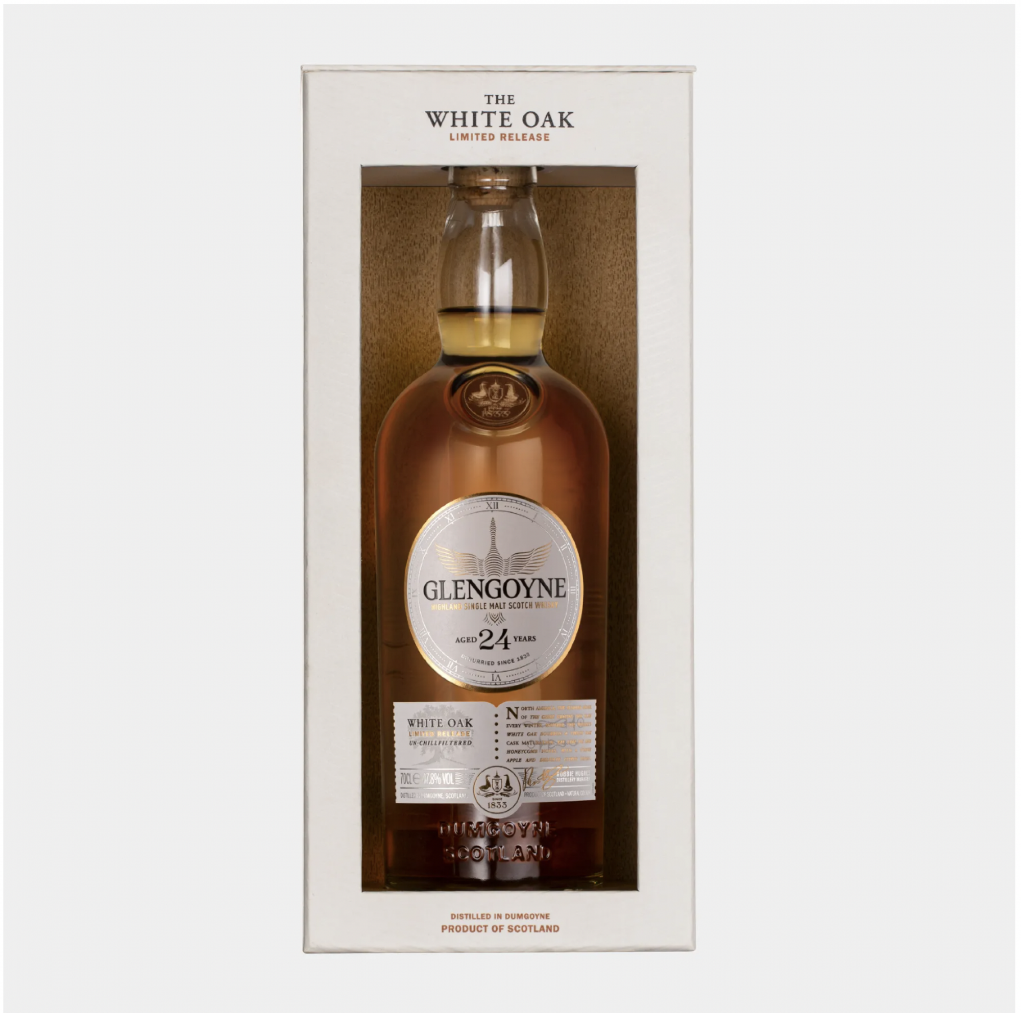Poznata praksa škotskih destilera nalaže da se single malt tijekom dana tradicionalno razrjeđuje vodom, dok se, kako se približava večer, njen udio svodi na jednu do dvije kapi. Škotski single malt viski Glengoyne White Oak 24 | Glengoyne