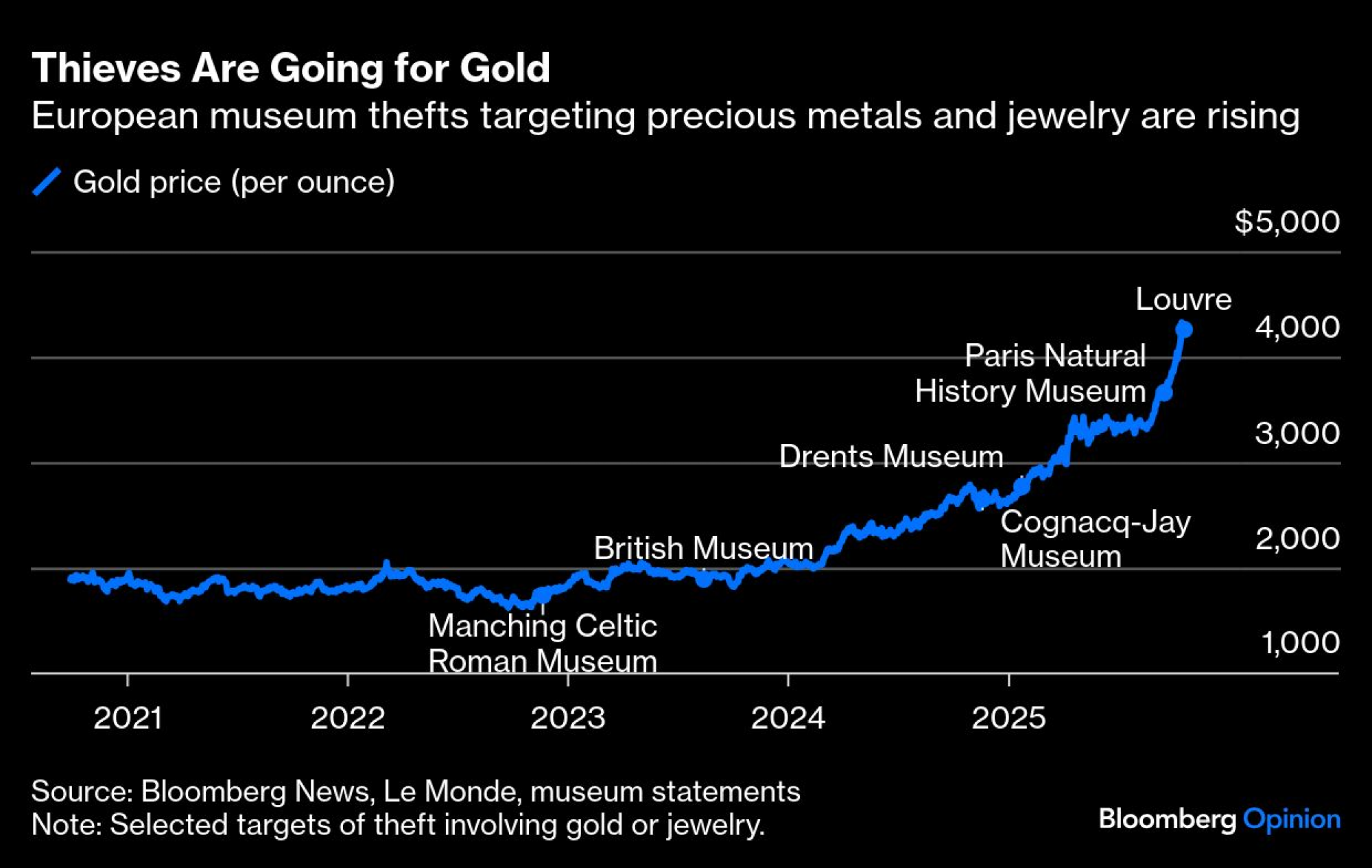 Ali ovaj incident također ukazuje na nešto mnogo šire: nezasitu pohlepu kriminalaca za zlatom, plemenitim metalima i draguljima, a ne za umjetničkim djelima, dok vrijednost tih sirovina vrtoglavo raste.