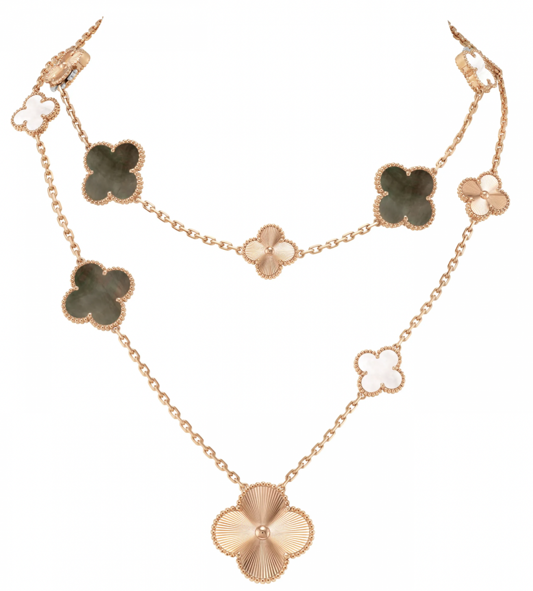 Kolekcija Alhambra - prstenje, narukvice, satovi i ogrlice, poznata je po motivu djeteline s četiri lista obrubljene zlatnim kuglicama. Sam oblik djeteline izrađen je od poludragog kamenja poput malahita i karneola, rezbarenog zlata ili školjke mother of pearl.