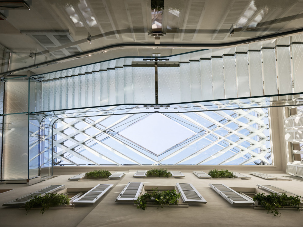 Nalik luksuznom prekookeanskom brodu, ovaj objekt objedinjuje butik, kafić i izložbeni prostor pod nazivom "Visionary Journeys" koji posjetitelje vodi kroz osam tematskih soba posvećenih kreacijama i naslijeđu ovog slavnog brenda. Topli tonovi drva, pažljivo osmišljena rasvjeta i police s odabranom literaturom stvaraju atmosferu transatlantskih putovanja.