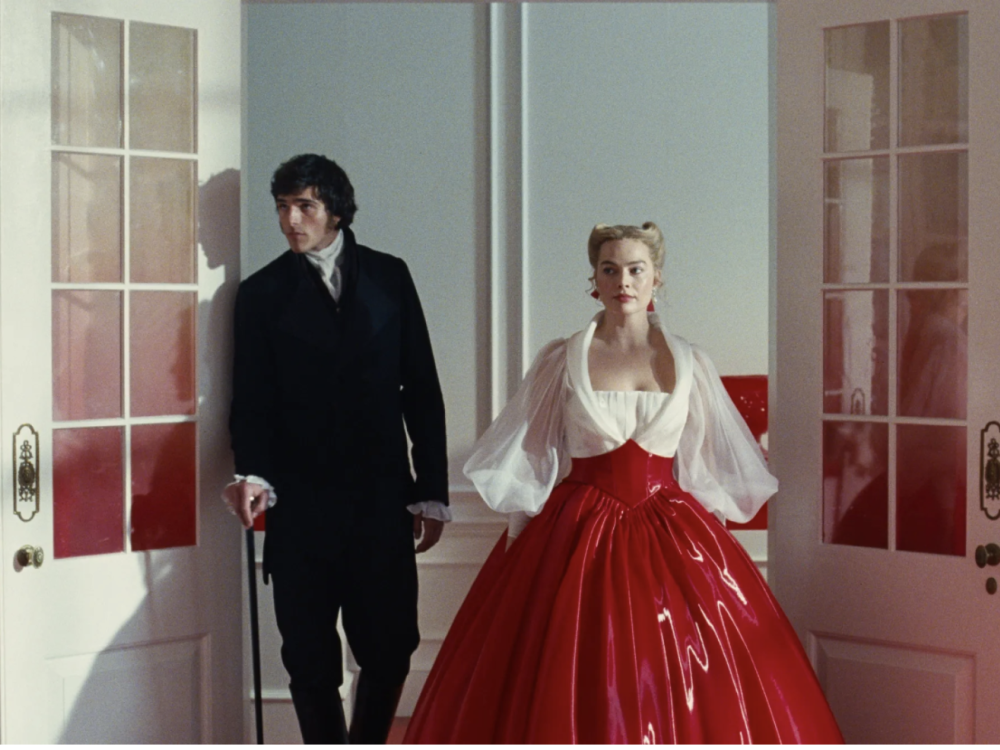 Redateljica izostavlja neke ključne elemente i mijenja brojne zaplete. Pjesme Charli XCX dominiraju soundtrackom, a kostimi izgledaju kao da su stigli iz kuće lutaka poremećenog djeteta. Možda je najveća razlika između Fennell i izvornika to što Cathy (Margot Robbie, ujedno i producentica) i Heathcliff (Jacob Elordi) u novoj verziji realiziraju svoju zabranjenu ljubav – i to u velikoj mjeri. Imaju burnu, strastvenu vezu; on joj liže lice i siše prste.