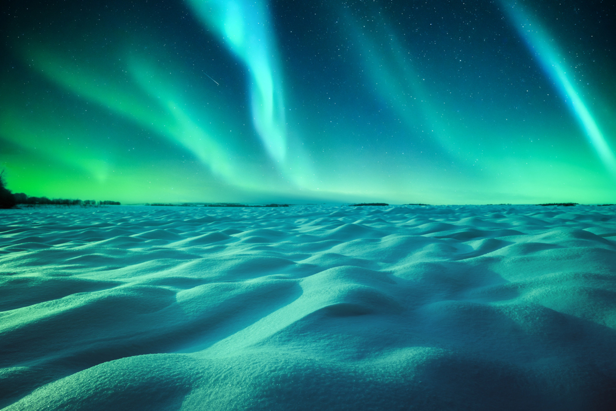 Snježni pokrivač i Aurora borealis | Depositphotos