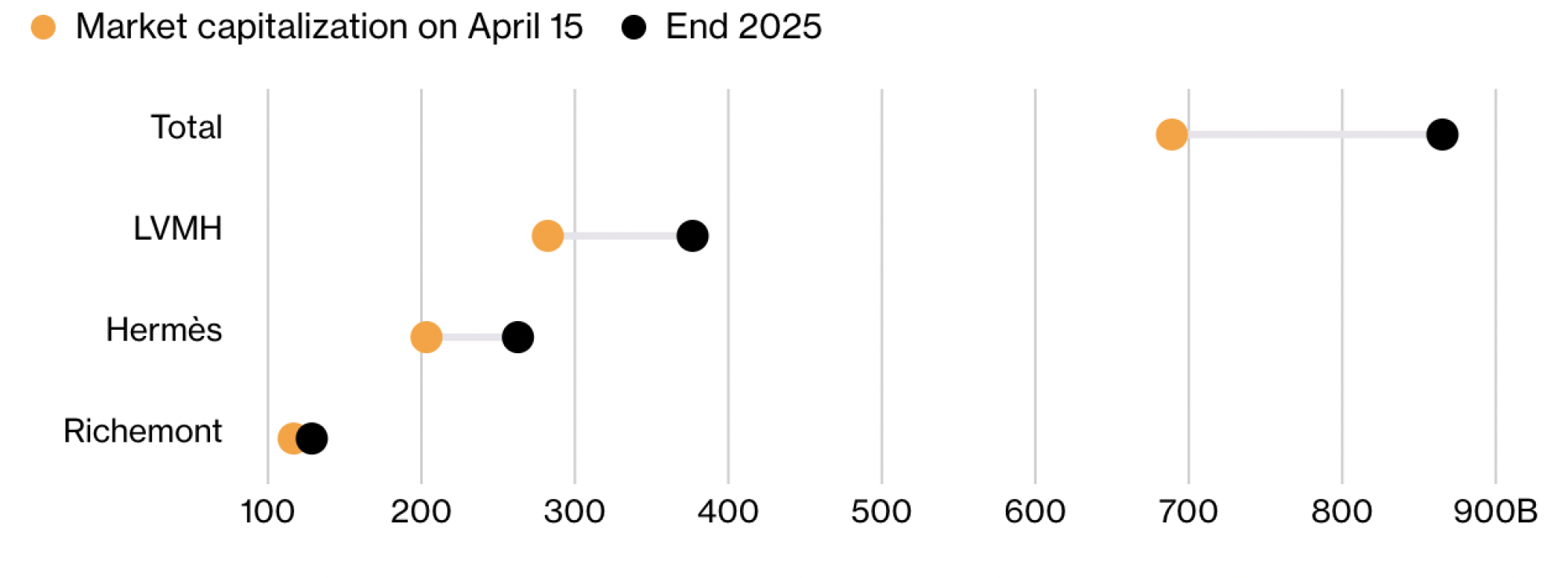 Deset najvećih europskih luksuznih kompanija izgubilo je oko 176 milijardi dolara tržišne kapitalizacije od početka godine, prema podacima koje je prikupio Bloomberg. LVMH, kao ključni indikator industrije, čini gotovo 100 milijardi dolara tog gubitka. Usporedbe radi, širi indeks Stoxx 600 u istom je razdoblju zabilježio rast od 4,6 posto.
