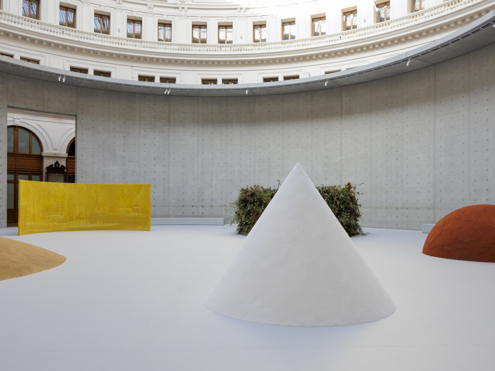 Ipak, dovoljan je samo jedan pogled na zadivljujuće minimalističku obnovu zgrade Bourse de Commerce, koju je projektirao arhitekt Tadao Ando, a u kojoj se nalazi Pinault Collection, da se vidi gdje Pinaultove stvarne simpatije leže. Zapravo, vodič izložbe za najnoviji postav otvara se njegovim citatom u kojem minimalnu umjetnost naziva "pokretačkom silom koja me prati i nadahnjuje već više od 50 godina".