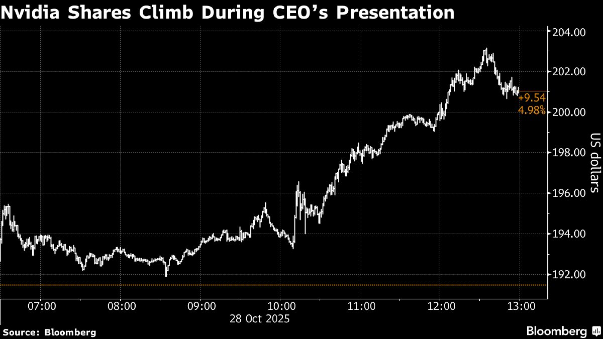 Huangov optimizam ublažio je strahove od investicijskog balona u sektoru umjetne inteligencije – dionice Nvidije porasle su za pet posto i dosegnule rekordnih 201,03 dolara po dionici.