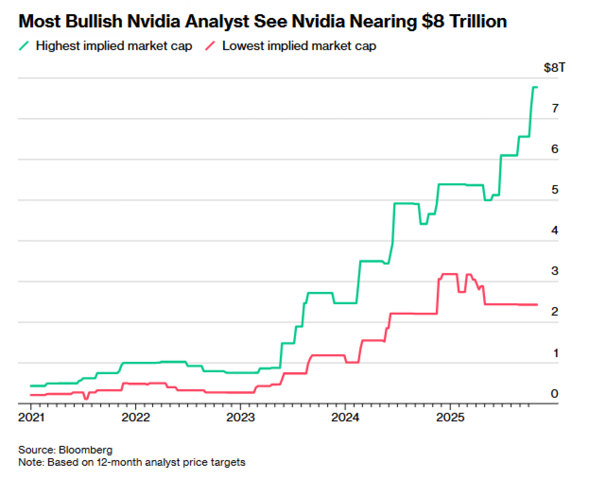 Gotovo svi analitičari s Wall Streeta pozitivni su prema dionici - oko 91 posto ih ima preporuku za kupnju. Opći je konsenzus da rast još nije gotov, a analitičar HSBC-a Frank Lee nedavno je povisio ciljanu cijenu dionice na rekordnih 230 dolara, što bi značilo tržišnu kapitalizaciju blizu 8 bilijuna dolara.