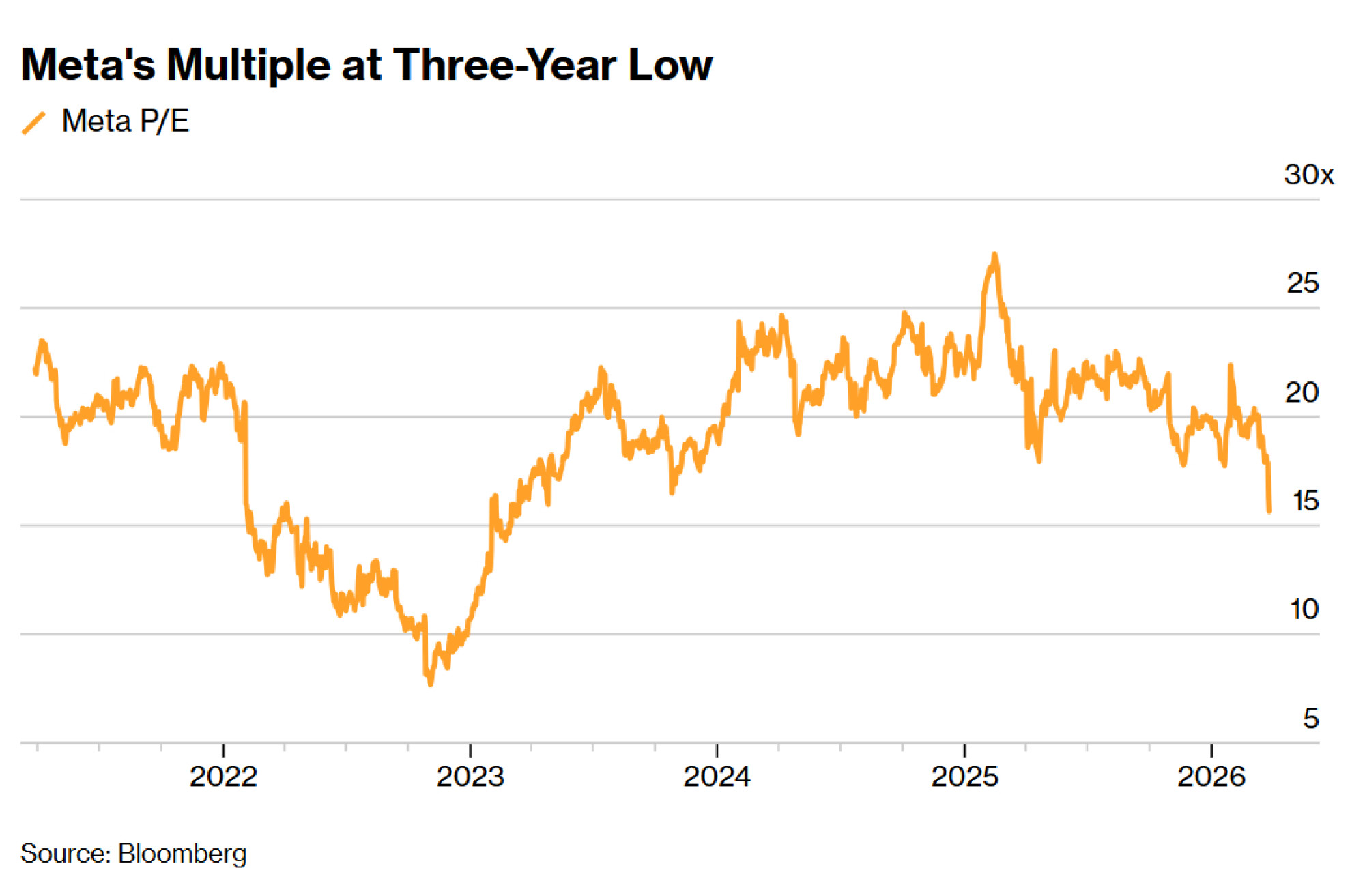 Kombinacija uzlaznih revizija i pada cijene dionice učinila je Metu najjeftinijom dionicom u skupini "Veličanstvenih sedam" (Magnificent Seven). Njezine dionice trguju se po cijeni koja je oko 16 puta veća od procijenjene zarade u sljedećih 12 mjeseci, što je njihova najniža valuacija od ožujka 2023. godine.