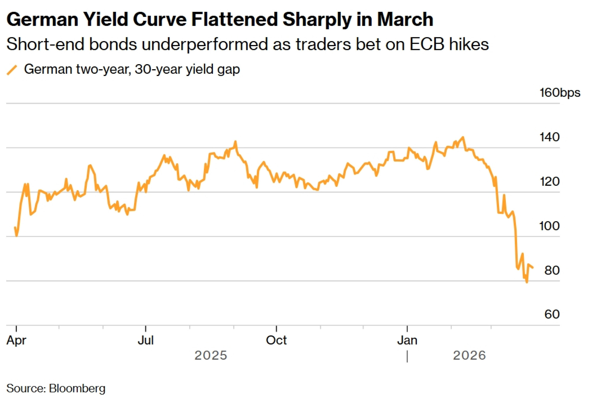 U pojedinim trgovinskim sesijama ovog mjeseca, njemačke i britanske dvogodišnje obveznice zabilježile su dnevne raspone trgovanja iznad 25, odnosno 40 baznih bodova, što su razine koje su nadmašene tek nekoliko puta u povijesti.