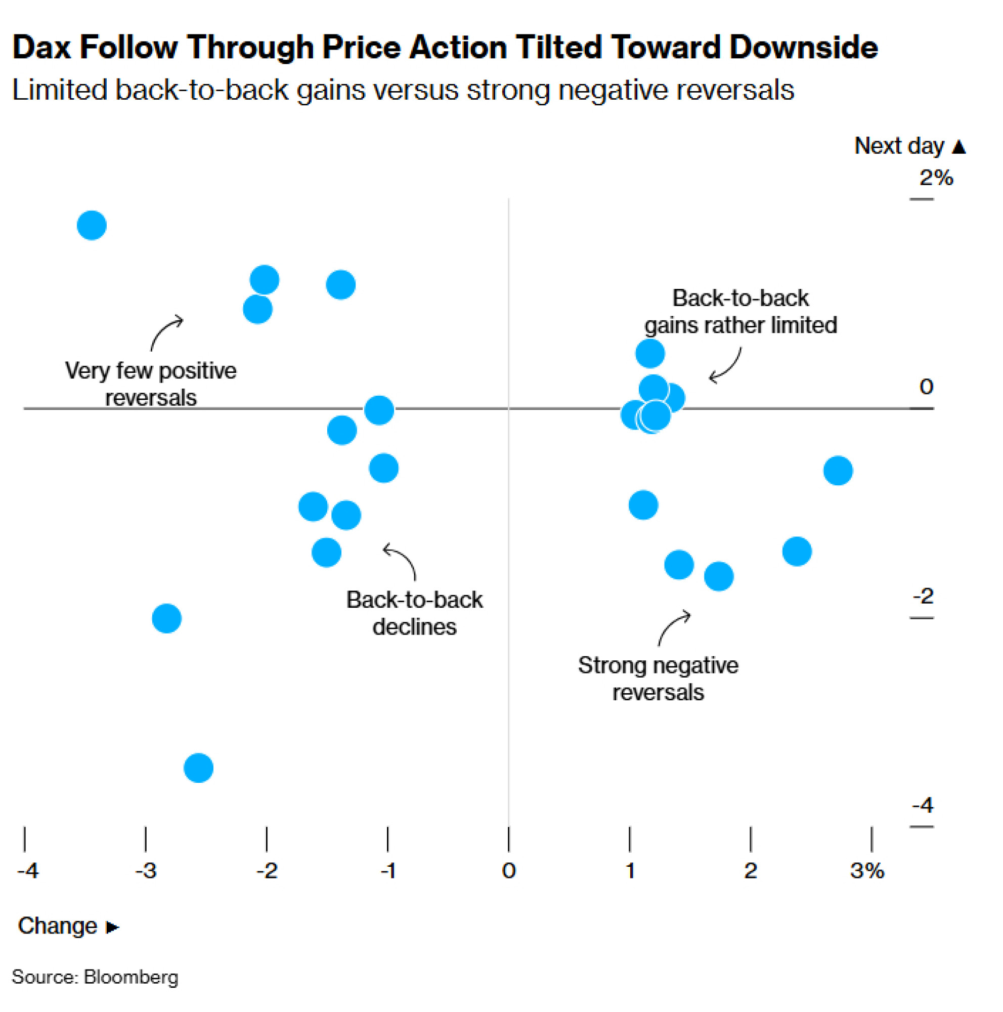 Sudeći prema trenutačnom cjenovnom zamahu, povjerenje u Europi ostaje nisko. Indeks Stoxx 600 izbrisao je sav rast valuacije zabilježen između listopada i veljače u samo mjesec dana. A njemački indeks DAX, koji snosi najveći teret realizacije dobiti tijekom konflikta, pao je već za više od osam posto od početka rata.