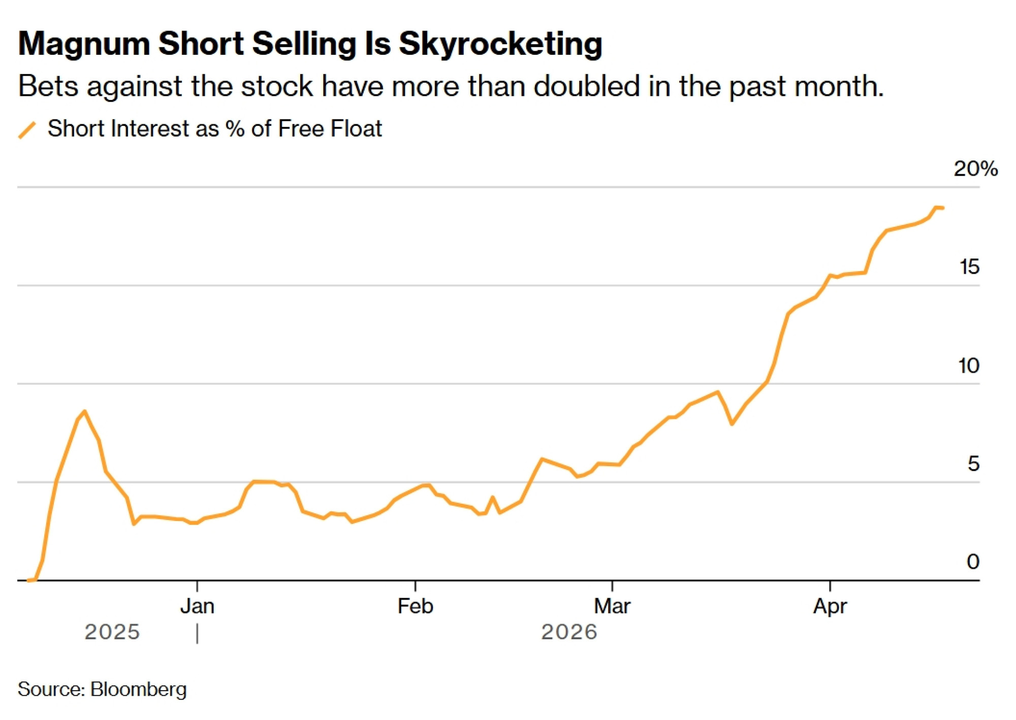Prošlog je tjedna hedge fond Walleye Capital LLC povećao svoju neto kratku poziciju za 24 posto na 3,8 milijuna dionica, prema podacima iz podnesaka koje je prikupio Bloomberg. Ostali fondovi, uključujući Marshall Wace LLP i Ilex Capital Partners (UK) LLP, također su uložili medvjeđe oklade (oklade na pad vrijednosti) protiv Magnuma.