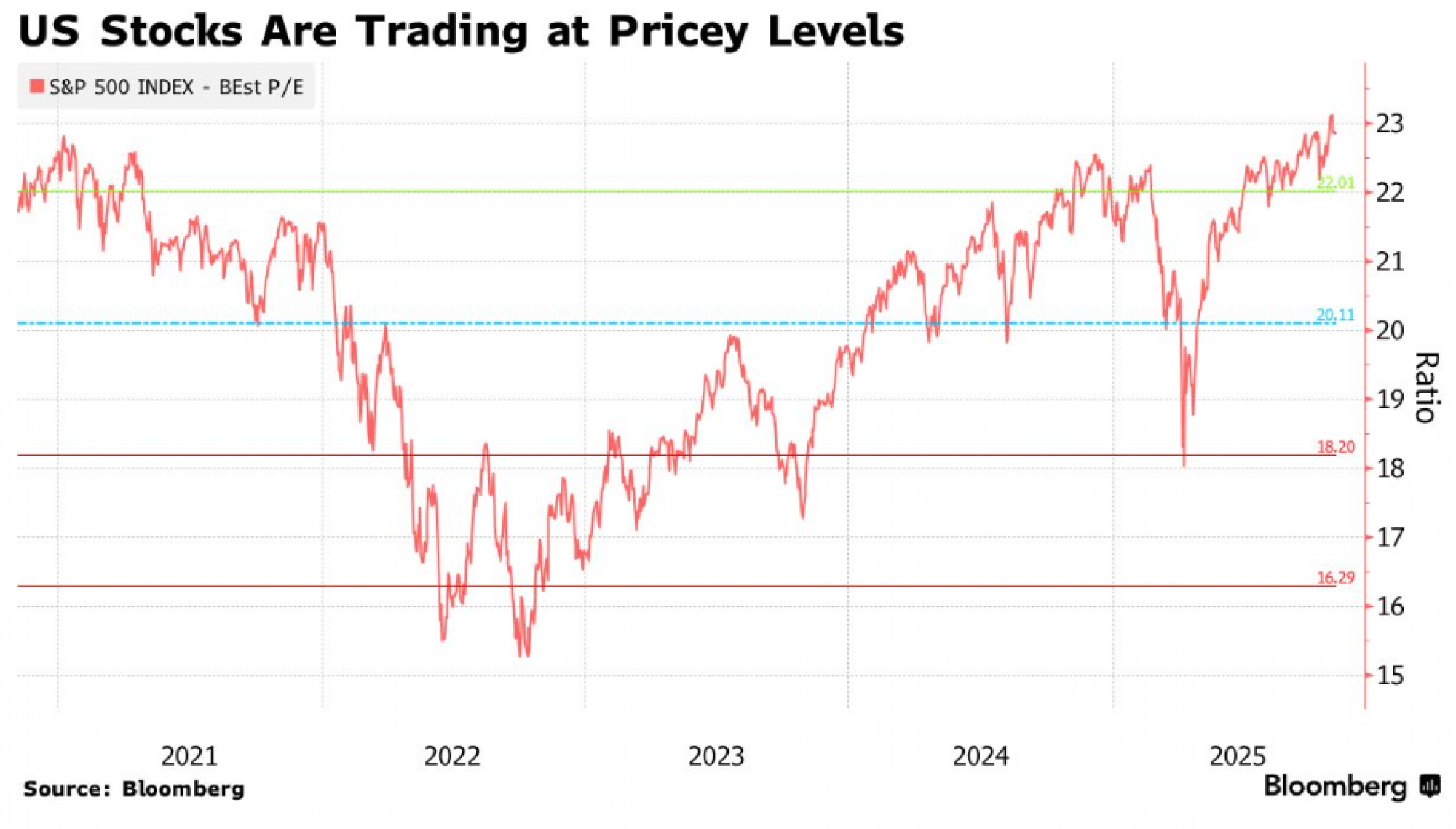 S&P 500 trenutno trguje po omjeru 23 puta većem od procijenjene buduće dobiti, iznad petogodišnjeg prosjeka od 20 puta. Slično tome, Nasdaq ima omjer od 28 puta, u usporedbi s gotovo 19 puta prije tri godine. Terminski ugovori na ovaj indeks pali su u utorak do 1,4 posto, dok su dionice Palantira, ključnog predstavnika AI sektora, pale više od četiri posto u produljenom trgovanju zbog zabrinutosti oko visoke valuacije nakon rekordnog rasta.