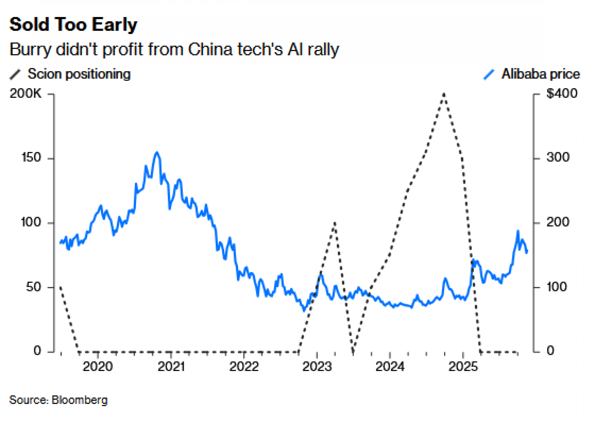 Međutim, manje je razumno to što se Burry nije držao svoje odluke. U prvom tromjesečju ove godine, kada su drugi razmišljali o proboju DeepSeeka i kineskom potencijalu umjetne inteligencije, zatvorio je sve svoje pozicije u Alibabi. Kao rezultat toga, Scion nije uspio kapitalizirati rast dionica i ponovno ocjenjivanje koje je uslijedilo. Dionice su ove godine porasle za preko 80 posto jer je jeftin i dobar model umjetne inteligencije tvrtke zasjao.