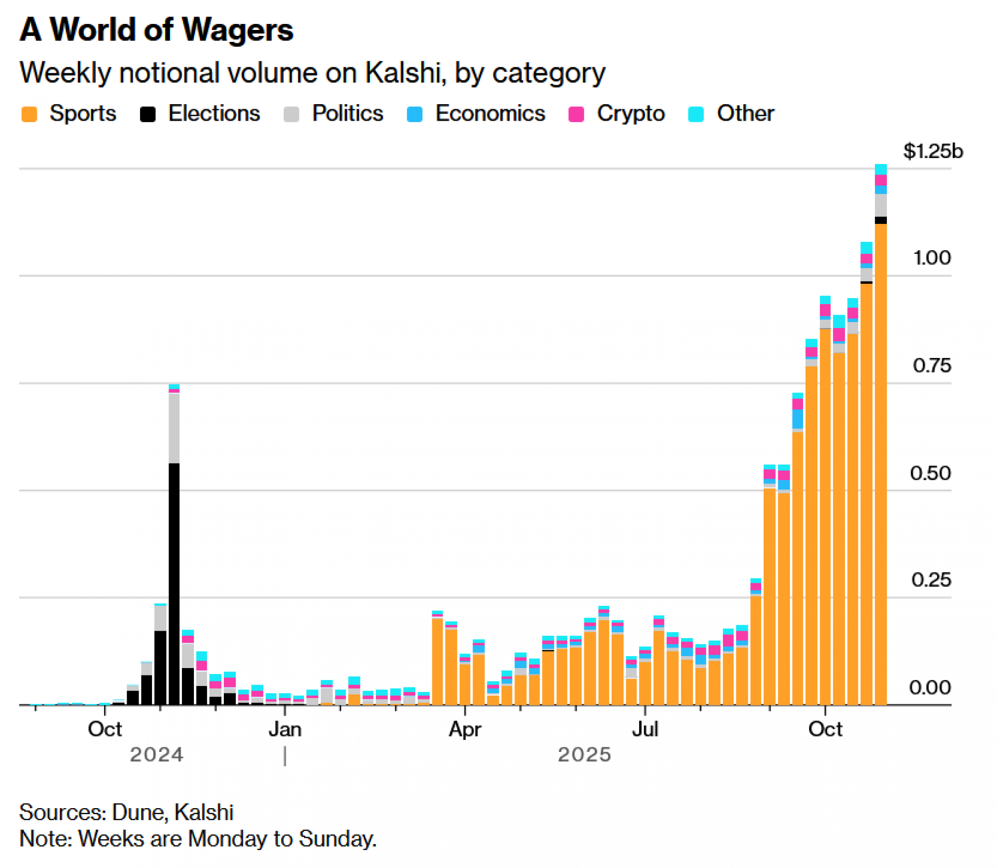 Sahine izvannastavne aktivnosti savršen su primjer nestajanja granice između ulaganja i kockanja. Najnoviji dokaz: u listopadu je vlasnik njujorške burze Intercontinental Exchange Inc. izjavio da će uložiti čak dvije milijarde dolara u platformu za klađenje Polymarket temeljenu na kriptovalutama. Tržište derivata CME Group Inc. također se udružuje s FanDuelom, online stranicom za kockanje, kako bi ponudili financijske ugovore vezane uz sve od sporta do ekonomskih pokazatelja i cijena dionica.