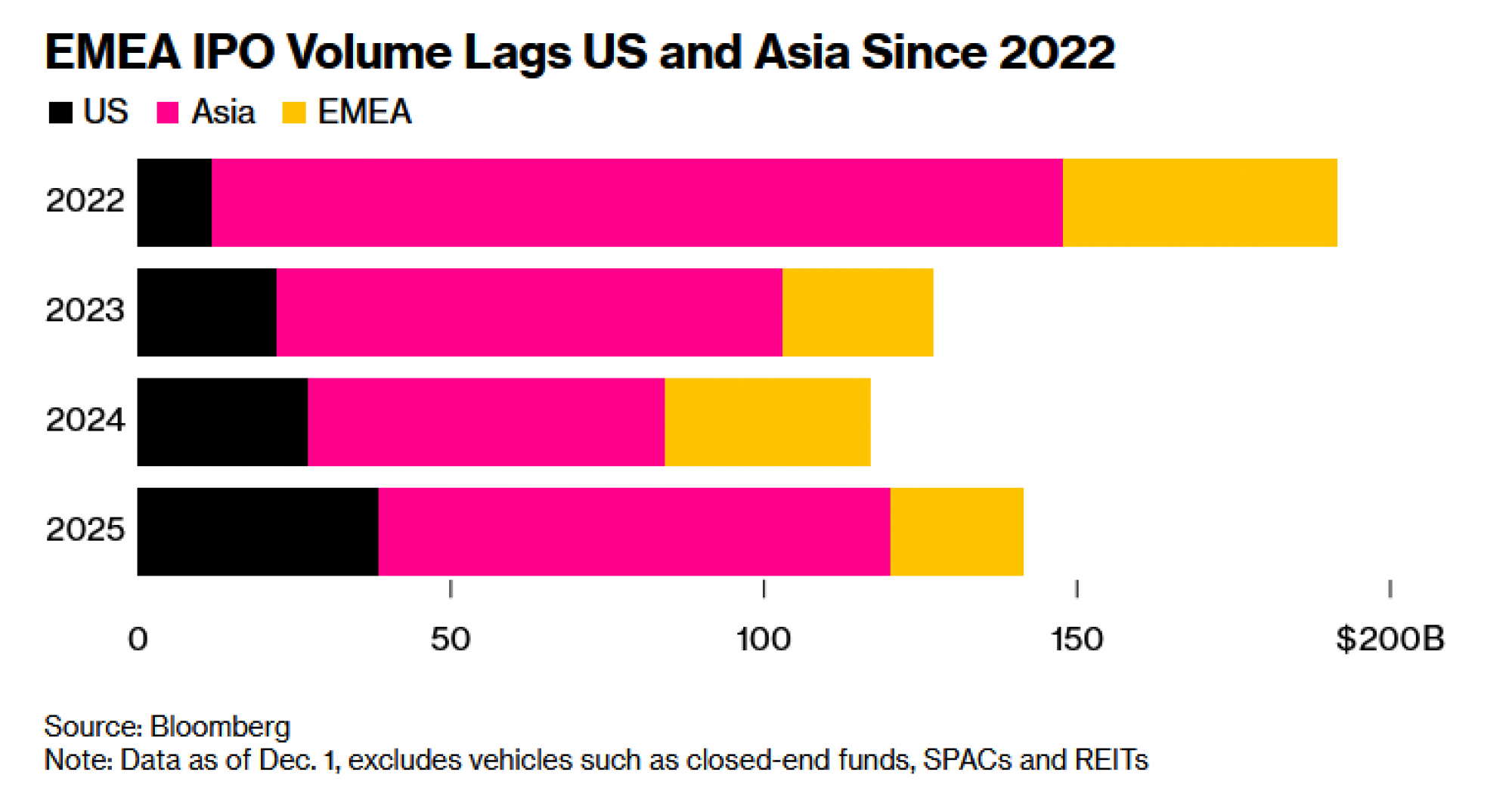 S obzirom na to da Azija prednjači u pogledu volumena IPO-a, prema podacima koje je prikupio Bloomberg, investitori u drugim regijama koji traže prilike trebali bi pogledati dalje od svojih dvorišta.