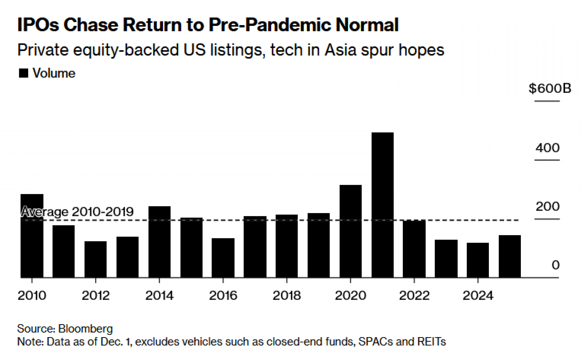 Nagovaranje private equity fondova da tvrtke iz svojih portfelja izvedu na burzu bilo je riskantno posljednjih godina, a investitori su bili oprezni zbog većeg dužničkog opterećenja, dok su očekivanja o valuacijama predstavljala kamen spoticanja. U 2025. godini, zaključno s 3. prosinca, bilo je 137 private equity IPO-ova, što je blizu najmanje količine od 2010. godine, prema podacima PitchBooka.