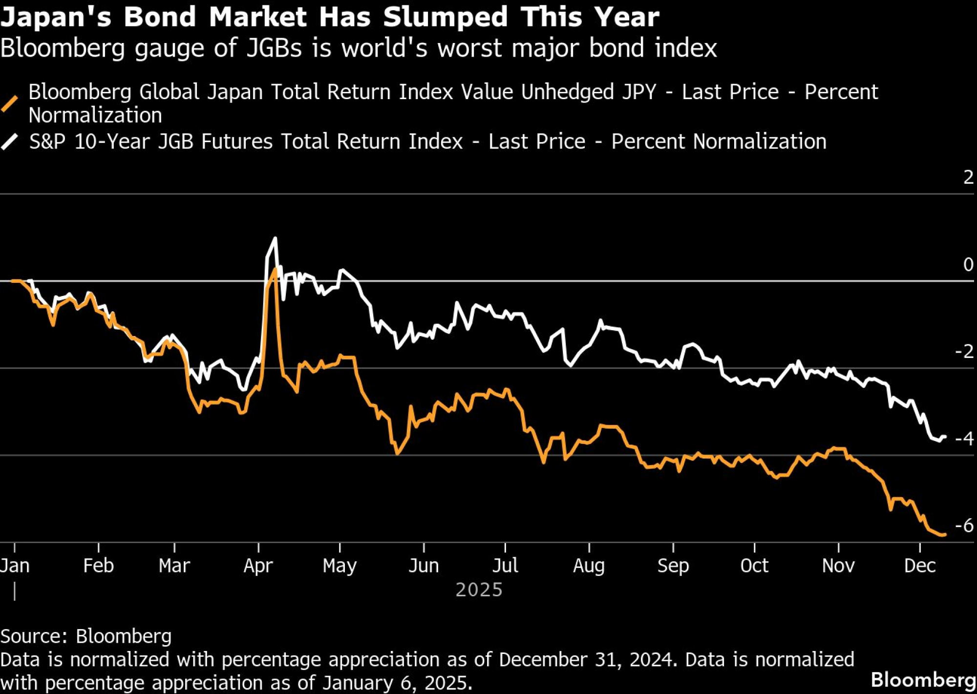 U 2025. godini widowmaker se pretvorio u generator zarade budući da su prinosi od referentnih državnih obveznica naglo porasli, pretvorivši japansko tržište duga vrijedno 7,4 bilijuna dolara u san trgovaca s kratkim pozicijama. Okidači su bili brojni, od podizanja kamatnih stopa do toga što je premijerka Sanae Takaichi pokrenula najveći val javne potrošnje još od popuštanja pandemijskih ograničenja. Prinosi od referentnih desetogodišnjih japanskih državnih obveznica probili su dva posto i dostigli razine nezabilježene desetljećima, dok su prinosi od tridesetogodišnjih obveznica porasli za više od jednog postotnog boda do povijesnog maksimuma. Bloombergov pokazatelj prinosa od japanskih državnih obveznica pao je više od šest posto tijekom godine zaključno s 23. prosincem, što ga čini najgorim velikim tržištem obveznica na svijetu.
