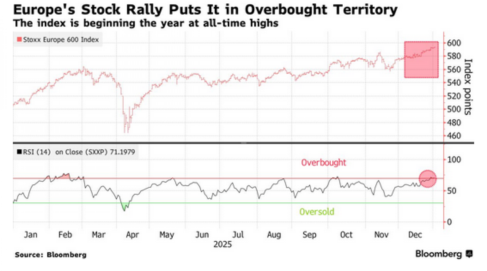 Europske dionice započele su novu godinu na rekordnim razinama, prateći dobitke globalnih dionica zbog kontinuiranog optimizma oko gospodarskog rasta, dok su se rudarski indeksi oporavili zbog viših cijena roba.