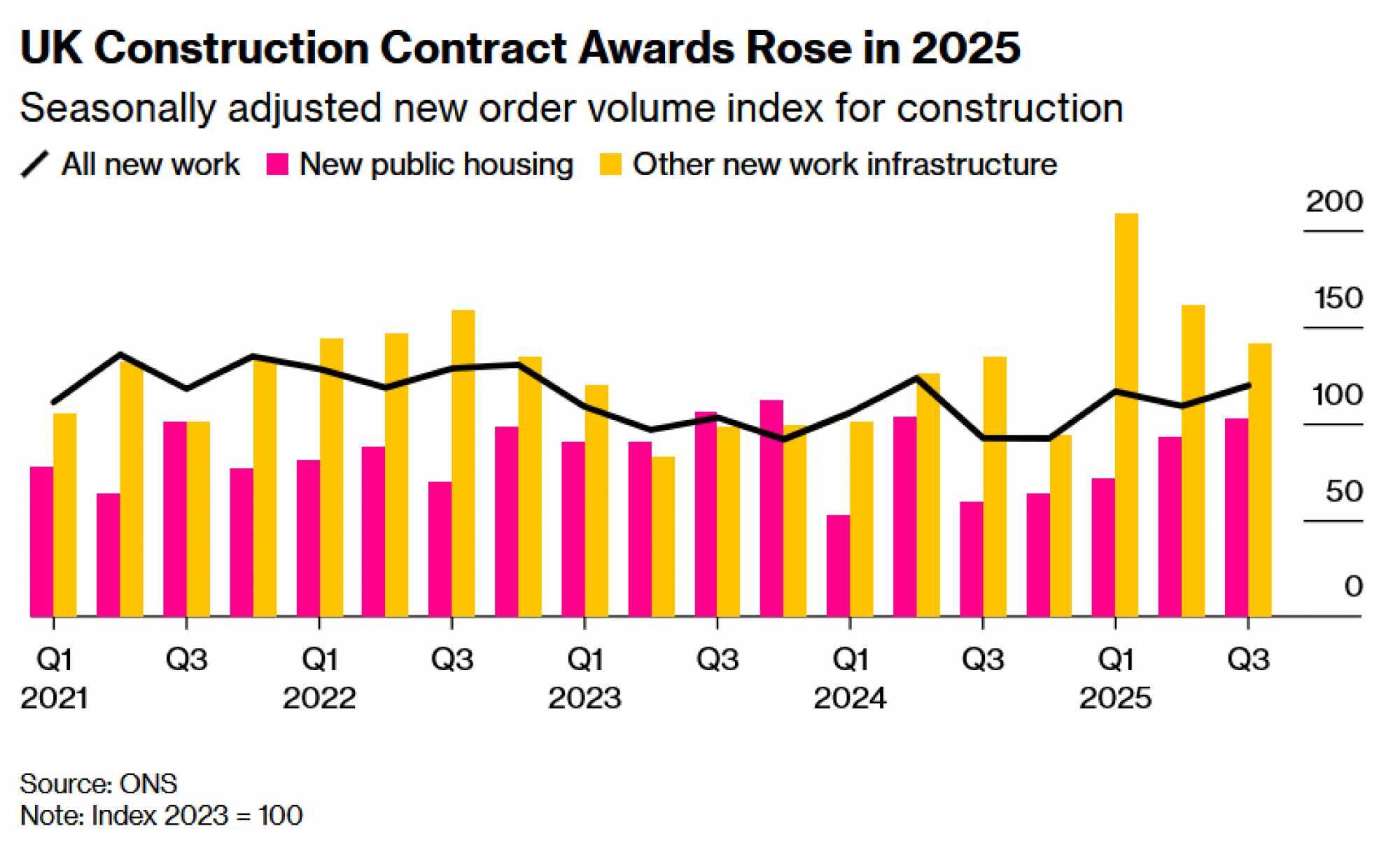 Među dionicama u Velikoj Britaniji s visokim potencijalom za nadolazeću godinu nalaze se one u građevinskom sektoru s izloženošću britanskoj infrastrukturi i pristupačnom stanovanju. Analitičari predvođeni Joeom Brentom primijetili su da su nedavni tržišni podaci pozitivni, s porastom broja dodijeljenih ugovora i daljnjim rastom indeksa menadžera nabave u građevinarstvu. Ključni izbori uključuju Costain Group Plc, Keller Group Plc i Kier Group Plc.