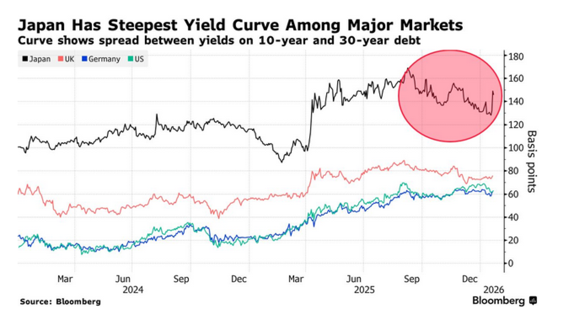 Prinos na 40-godišnje japanske obveznice naglo je skočio iznad četiri posto sredinom siječnja, što se u više od tri desetljeća nije dogodilo ni kod jedne japanske državne obveznice, bez obzira na rok dospijeća. Jedan od razloga je taj što je japanska središnja banka, koja posjeduje više od polovice državnih zapisa, počela smanjivati kupnju obveznica. Drugi je mogućnost dodatne prodaje državnih obveznica za financiranje planova premijerke Sanae Takaichi za smanjenje poreza.