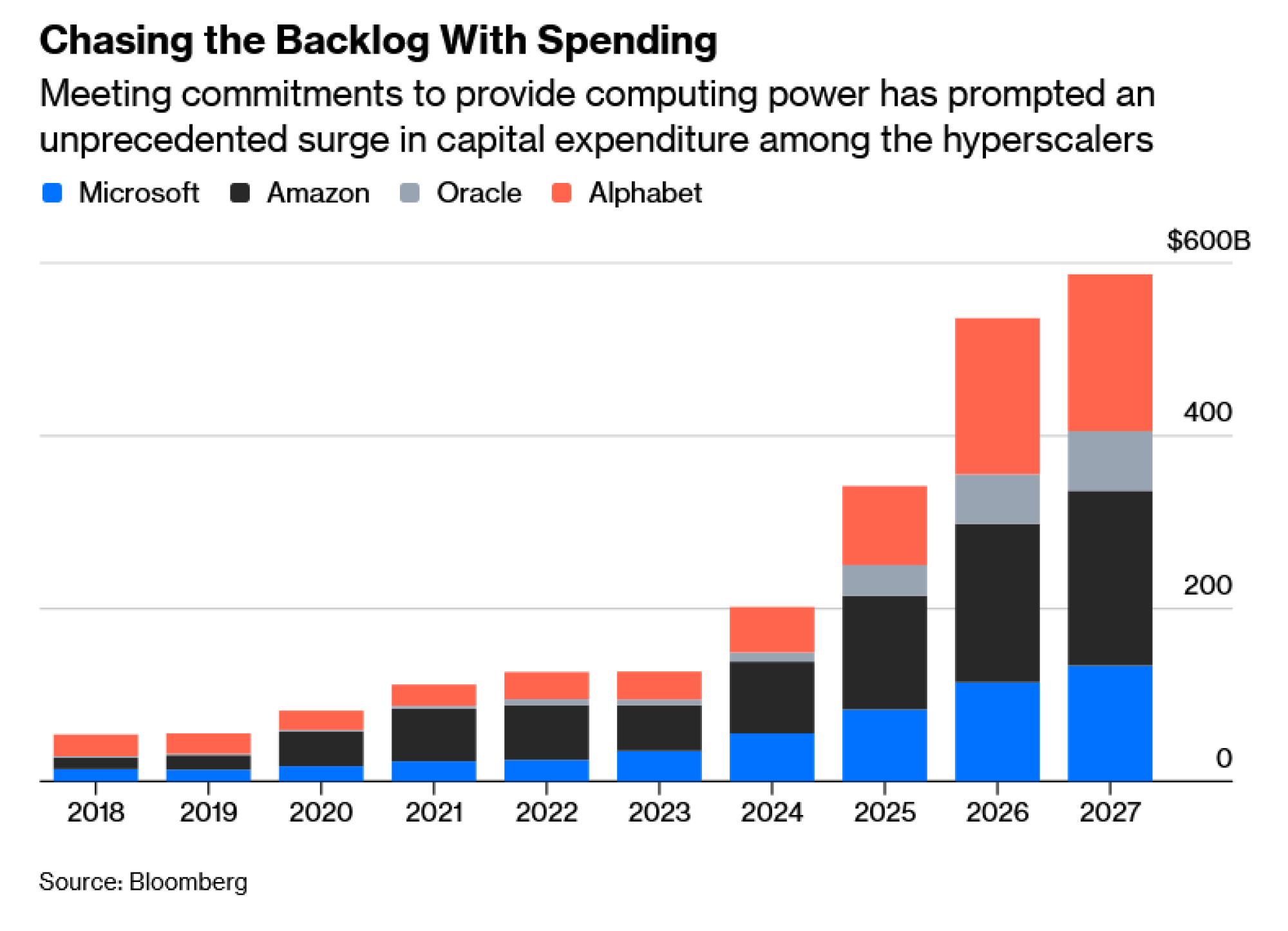 Ta metrika bila je relativno ispod radara sve do procvata umjetne inteligencije i posljedične borbe za podatkovne centre. Danas, knjige narudžbi četiri najveća hyperscalera (Amazon.com Inc., Microsoft Corp., Alphabet Inc. i Oracle Corp.) prelaze 1,6 bilijuna dolara, što je porast od 146 posto u odnosu na prošlu godinu.