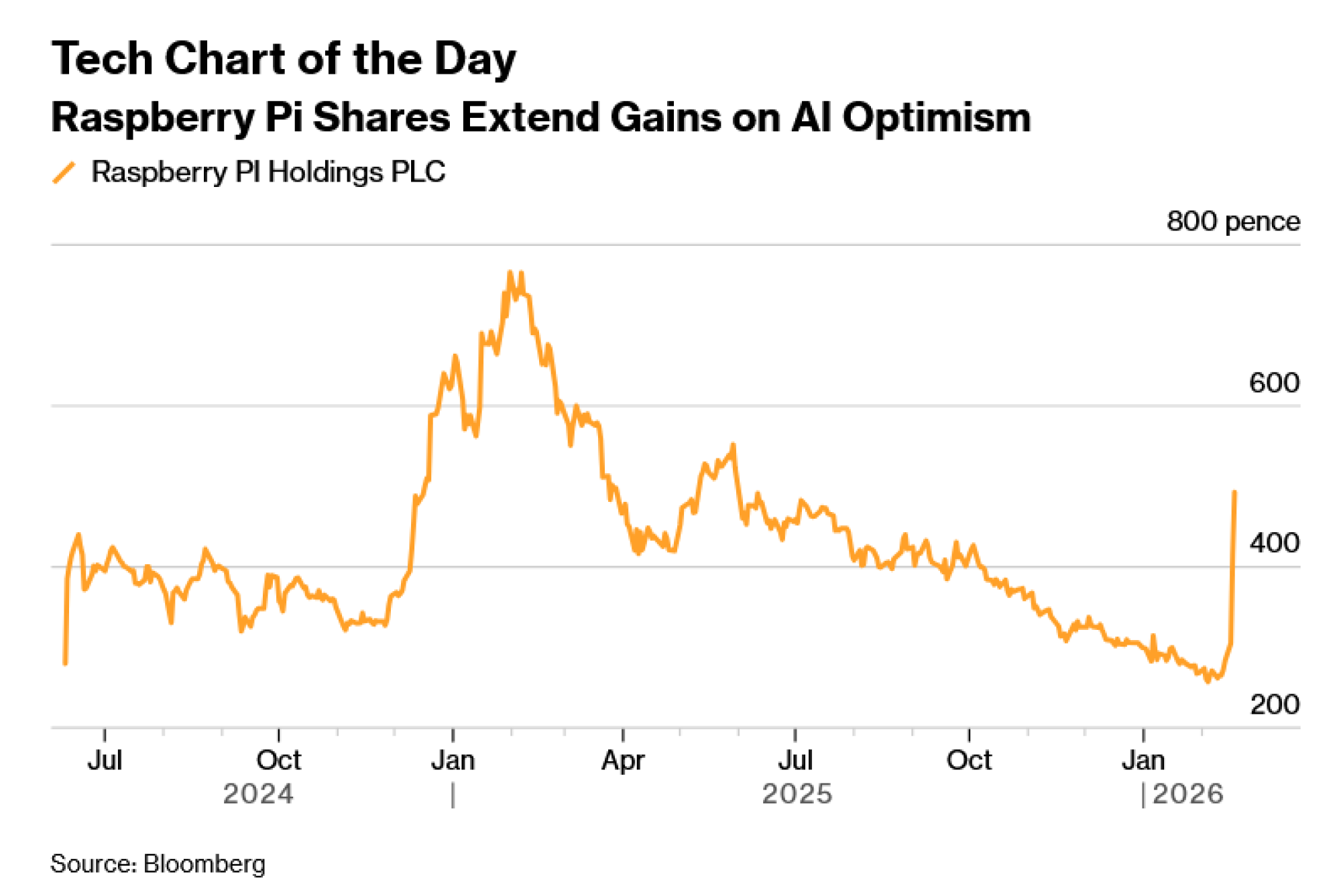 Dionice britanske tvrtke Raspberry Pi Holdings Plc nastavile su rasti zbog optimizma investitora oko toga kako bi se njezina jednostavna osobna računala mogla koristiti za umjetnu inteligenciju. Rast od 23 posto u srijedu produžio je petodnevni dobitak na više od 90 posto, potaknut viralnom objavom na društvenim mrežama koja je sugerirala da bi agenti umjetne inteligencije poput OpenClawa mogli potaknuti potražnju za Raspberry Pi računalima.