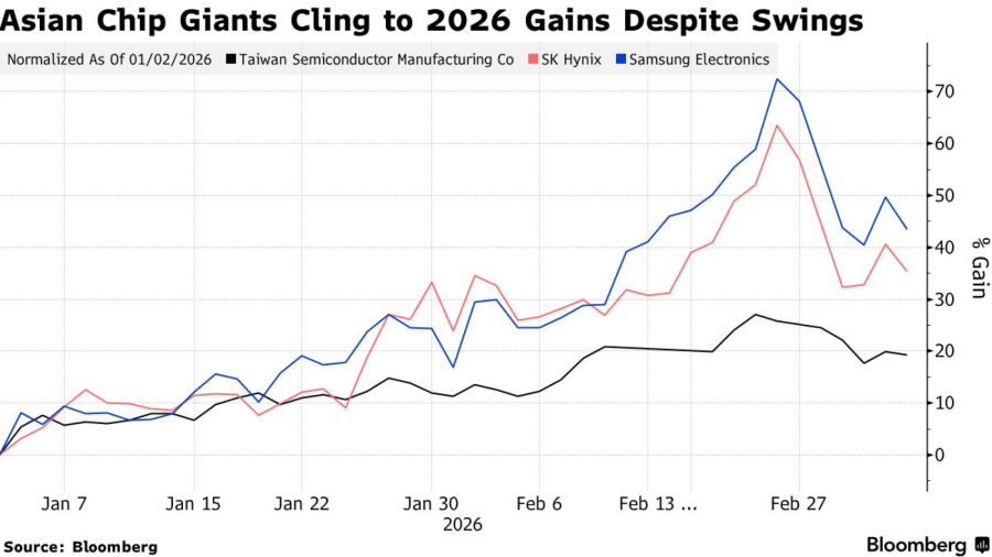 ad azijskih dionica potaknut ratom potiče interes globalnih investitora za povećanje izloženosti velikim proizvođačima čipova, što odražava povjerenje da boom umjetne inteligencije može izdržati sukob na Bliskom istoku.