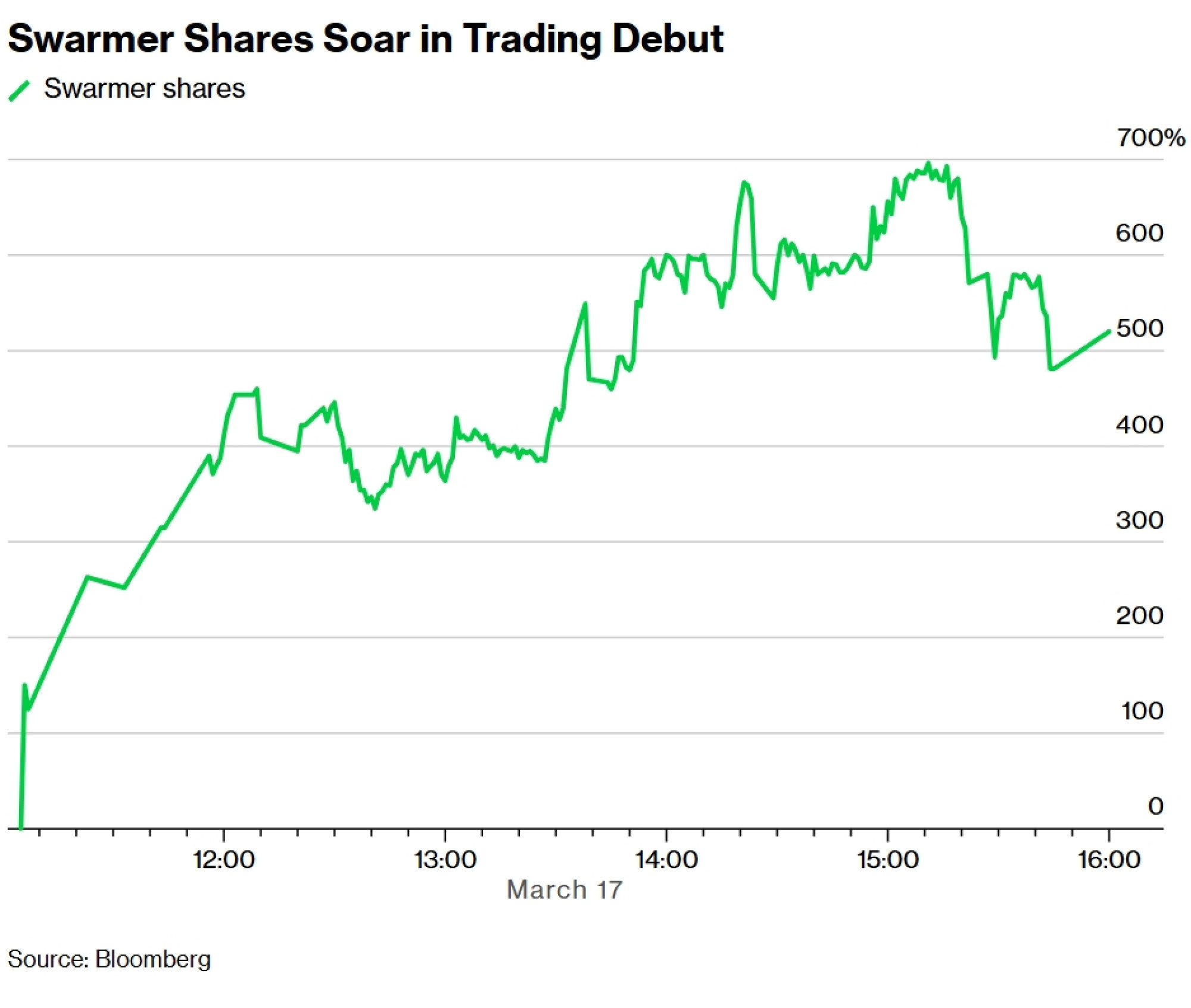 Dionice tvrtke Swarmer Inc. skočile su čak 700 posto u utorak, čime je debi ove tvrtke za AI softver za dronove postao najbolji početak trgovanja jedne američke dionice od spektakularnog ulaska tvrtke Newsmax Inc. na tržište prije gotovo godinu dana.