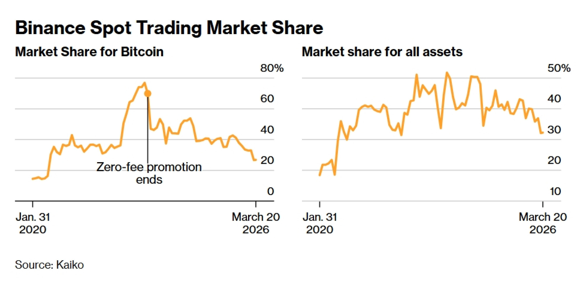 Binanceov udio u promptnom trgovanju Bitcoinom pao je na 27 posto zaključno s veljačom