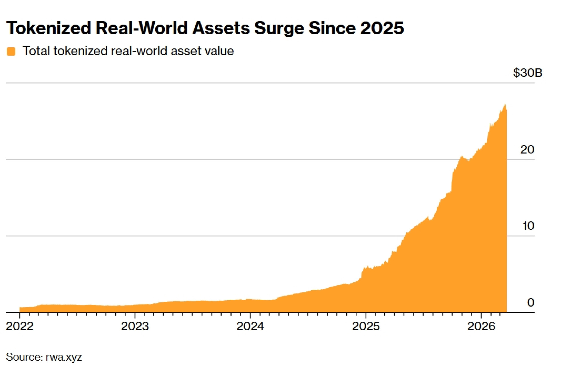 Tržišna vrijednost tokenizirane imovine iz stvarnog svijeta (RWA) porasla je za otprilike 360 posto od 2025. godine na 26,5 milijardi dolara, prema podacima rwa.xyz – što je i dalje tek djelić bilijuna u tradicionalnim fondovima, ali dovoljno veliko da privuče ozbiljan kapital.